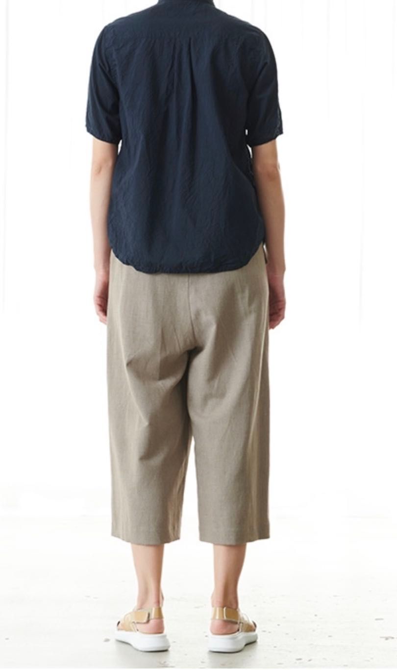 着丈ですが、これからの季節に爽やかに使える6〜7分丈のクロップド丈になります。