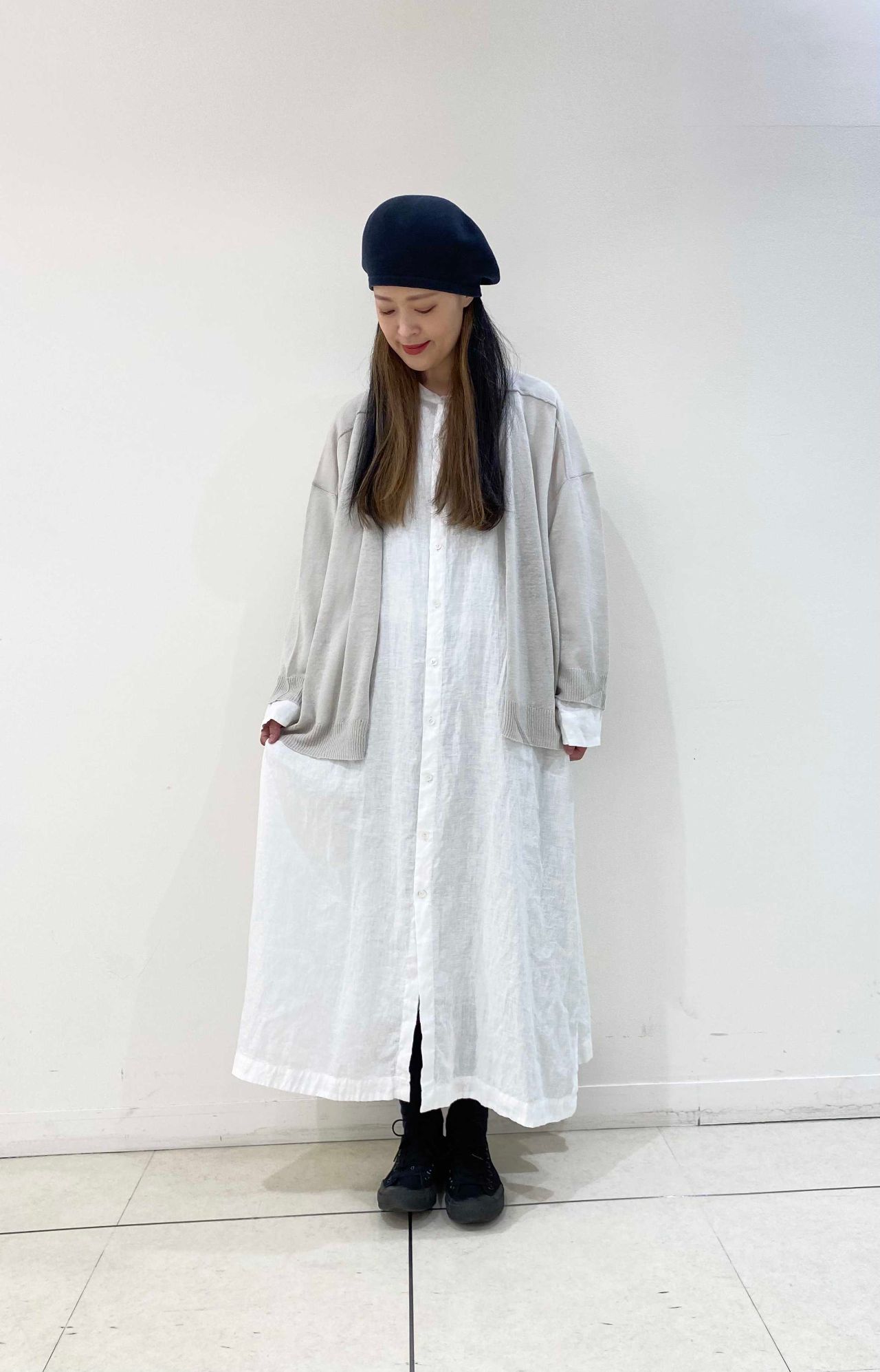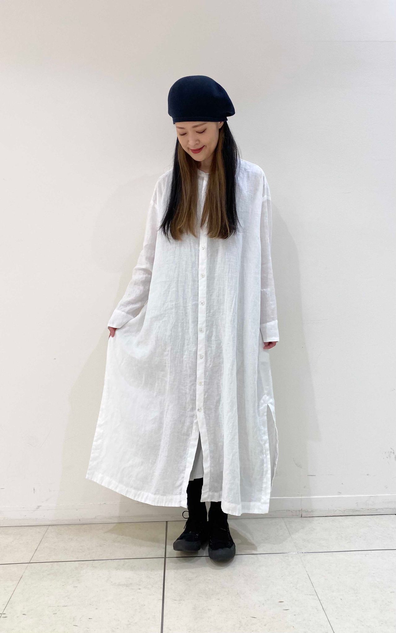 今日はワンピースで着ましたが、スリットが両サイドに入っている為ボトムとのレイヤー感が◎