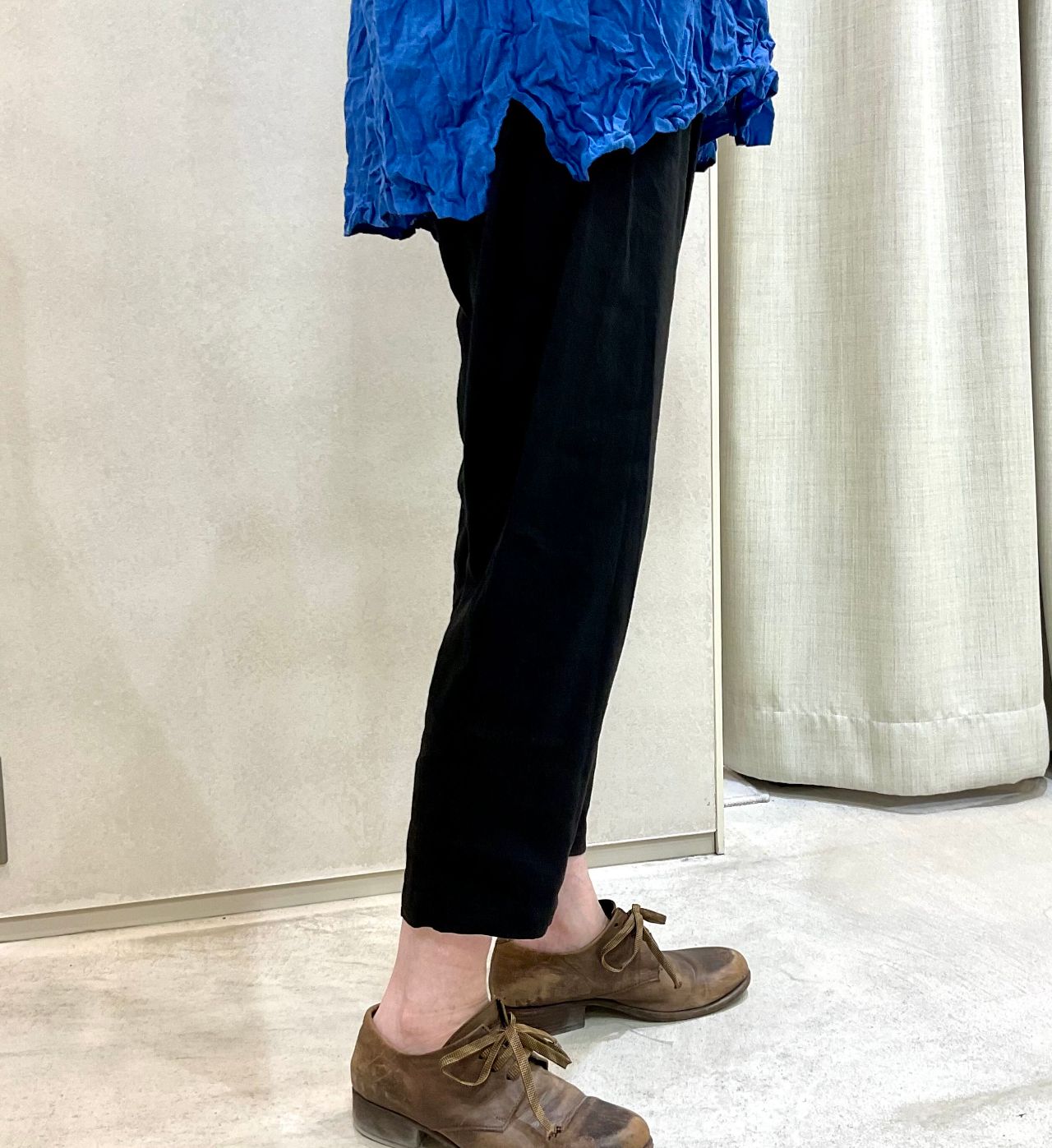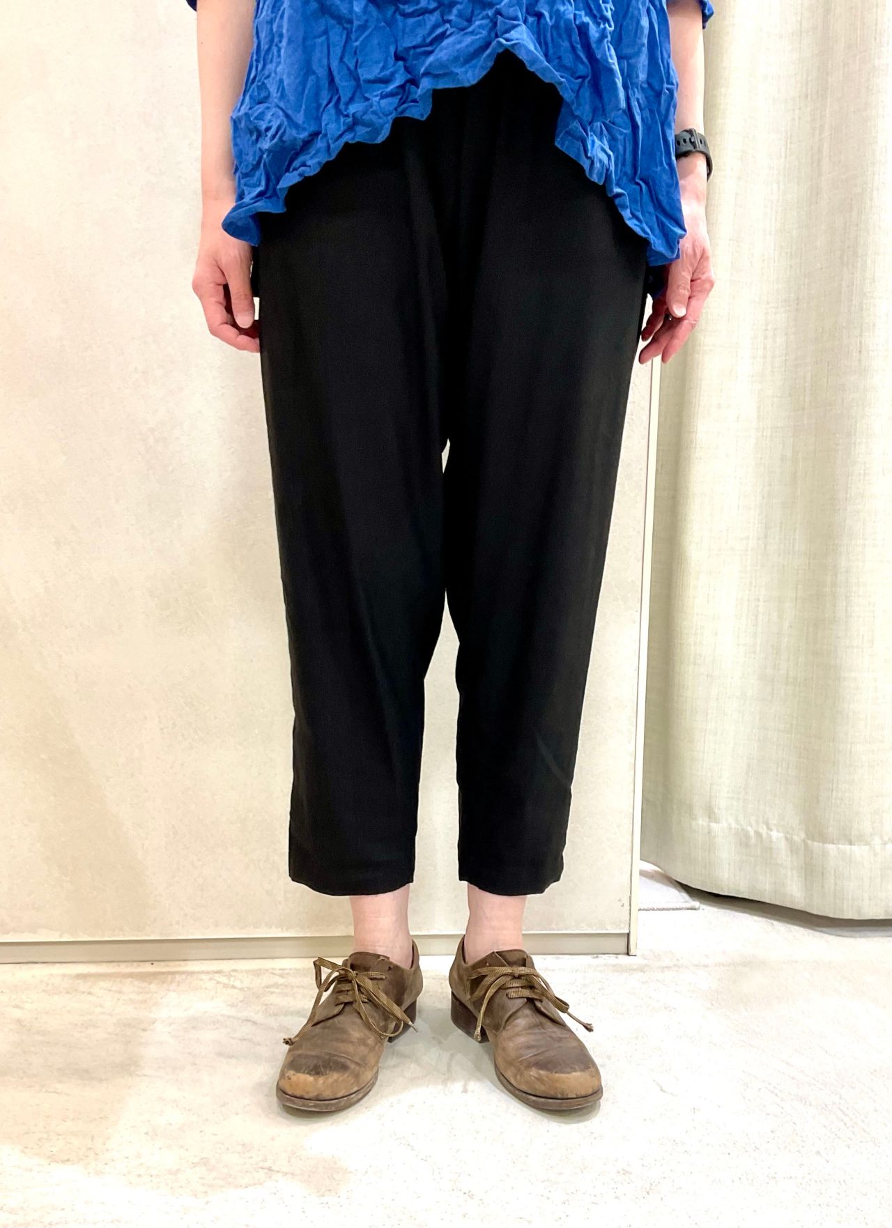 そしてレーヨンの持つドレープ感がミックスされた素材で、やわらかく伸縮ストレッチはストレスフリーです。