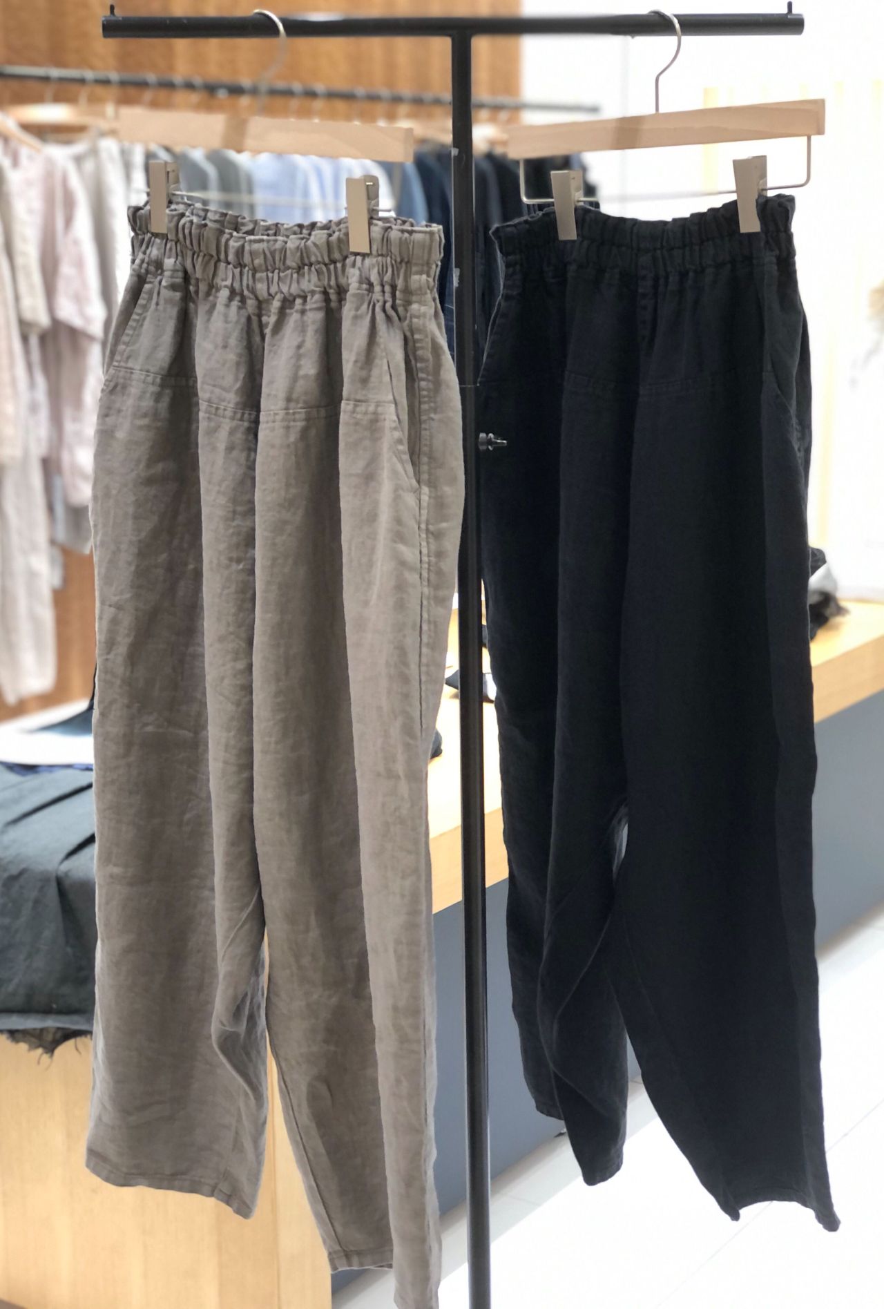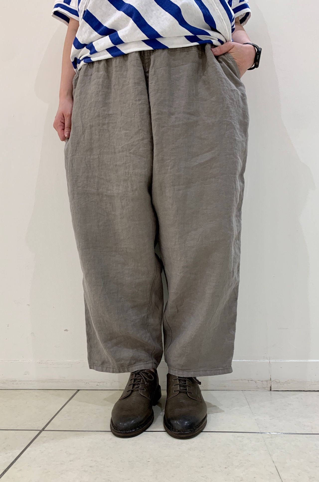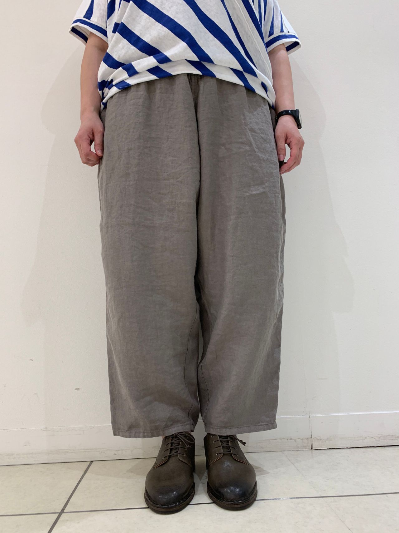 ウエスト総ゴムで履きやすく、適度なワイド感があるので涼しく、夏にオススメのパンツです。