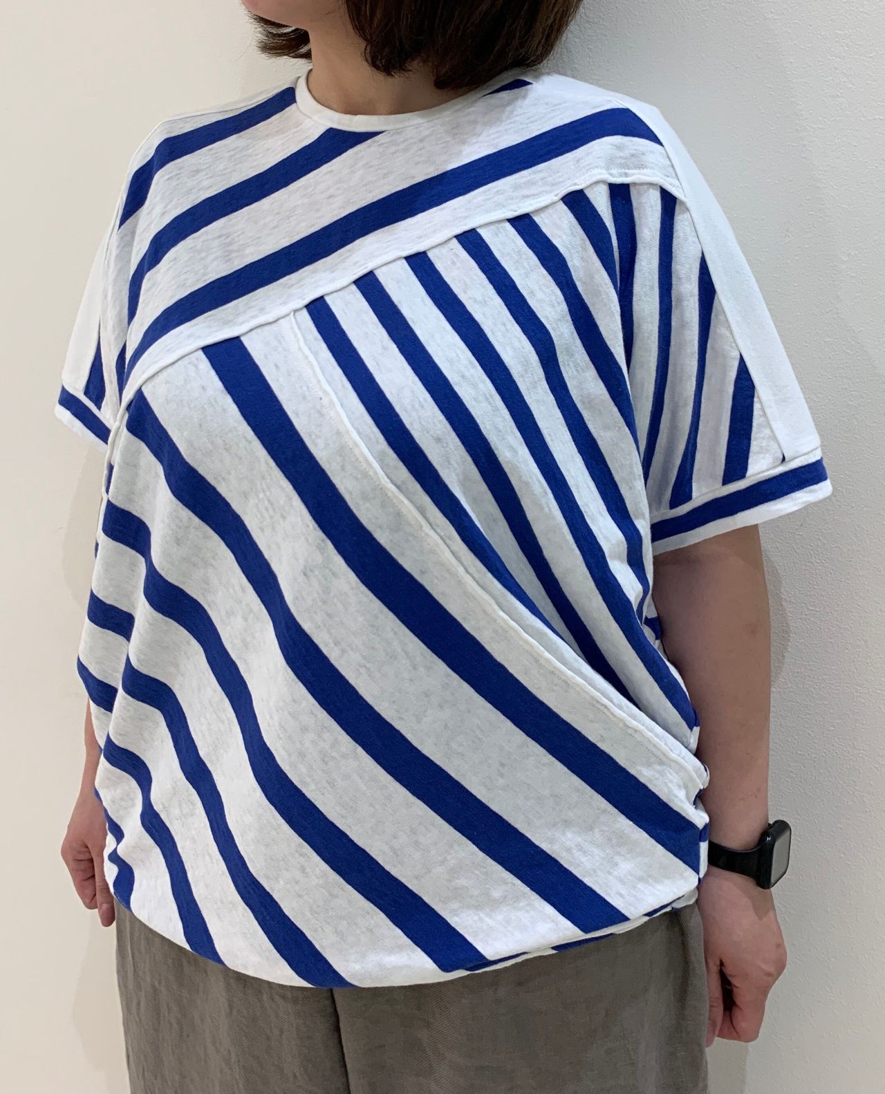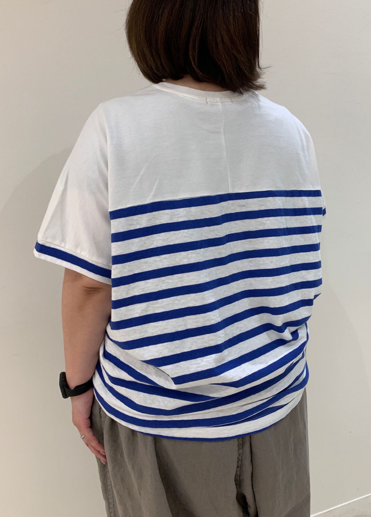 程よい厚さがあり、ボディラインを拾わない素材なので、気軽に一枚で着て頂けます。