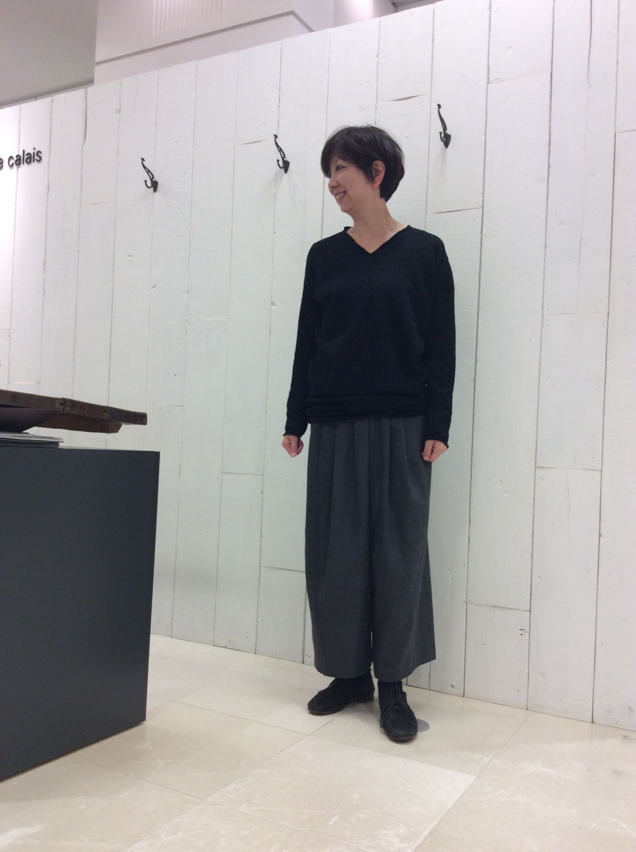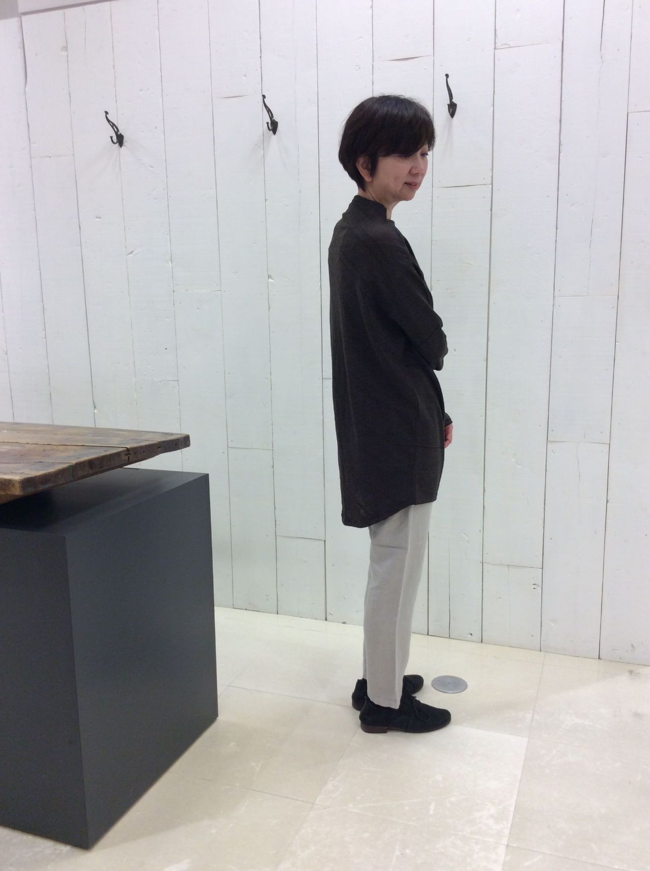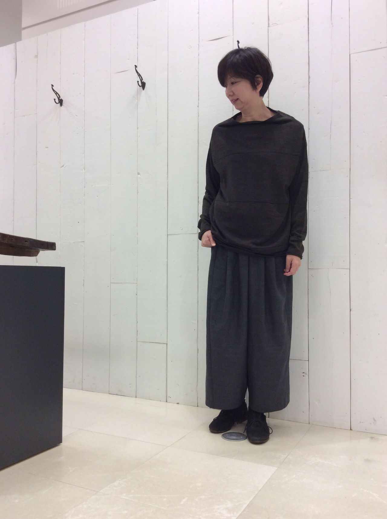 Vネックはいつものプルオーバーのサイズよりもコンパクトでアウターinがしやすいシルエットになっています。