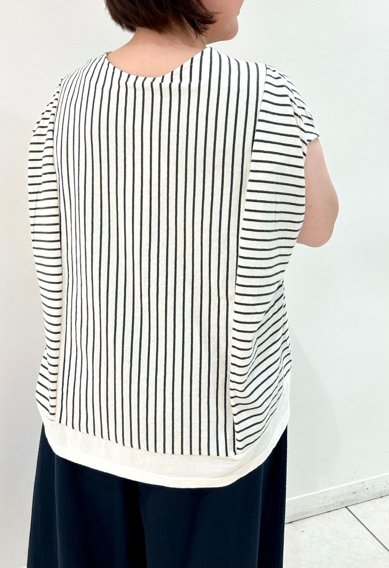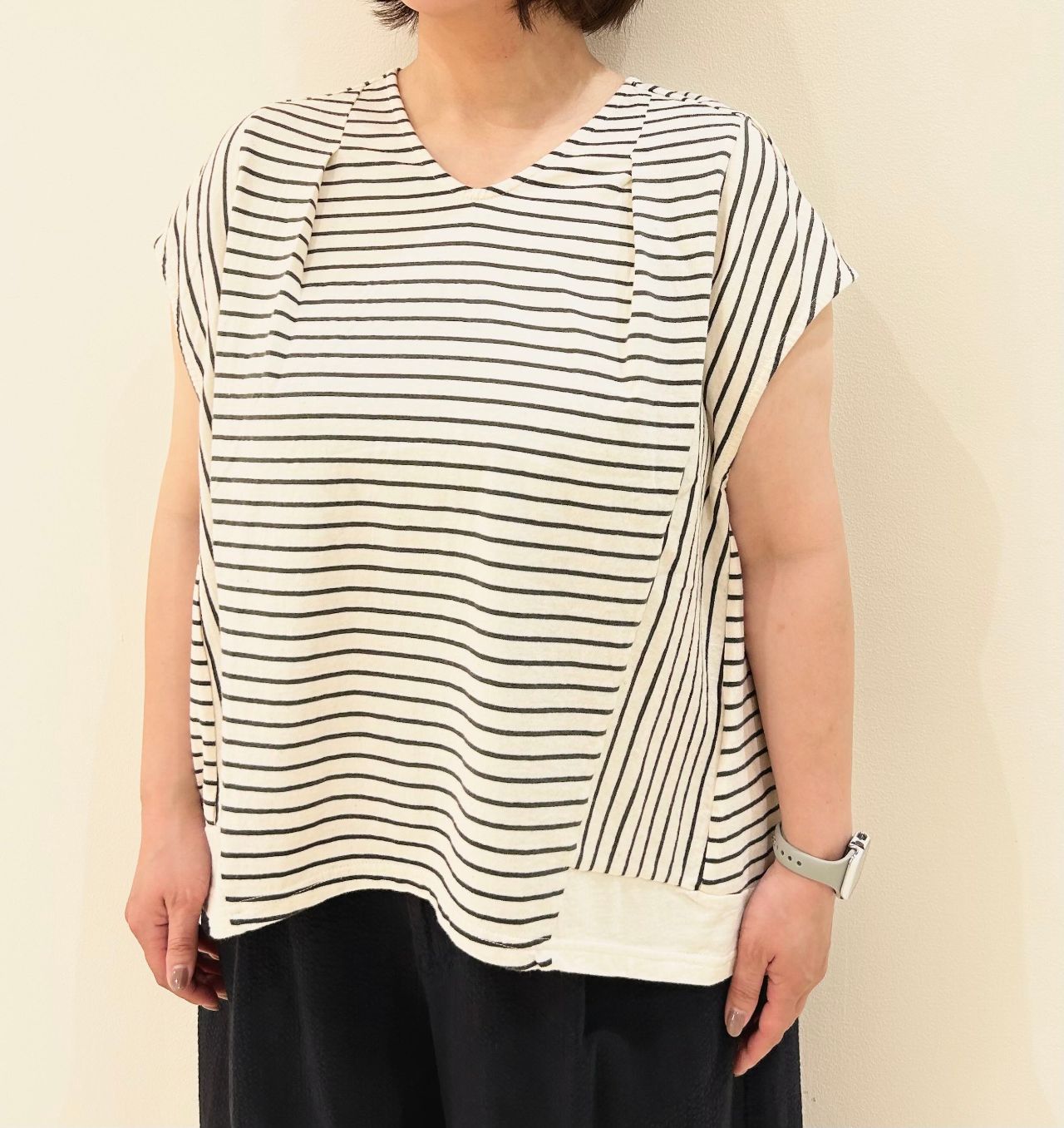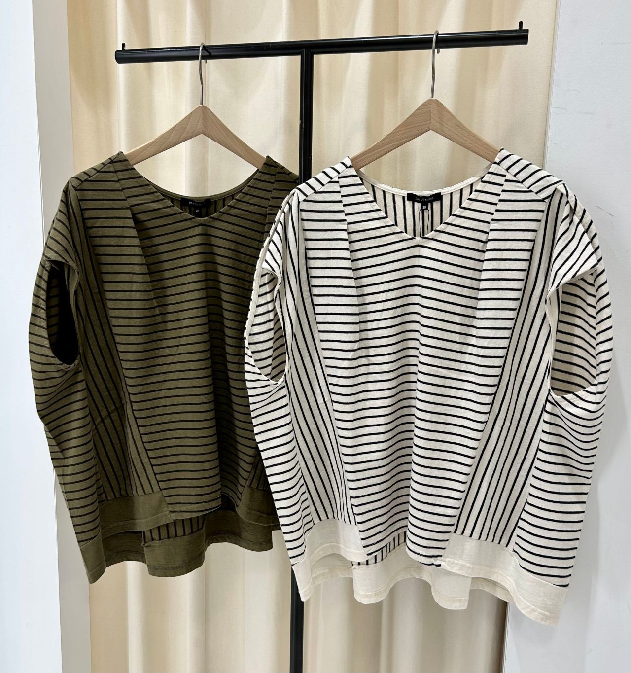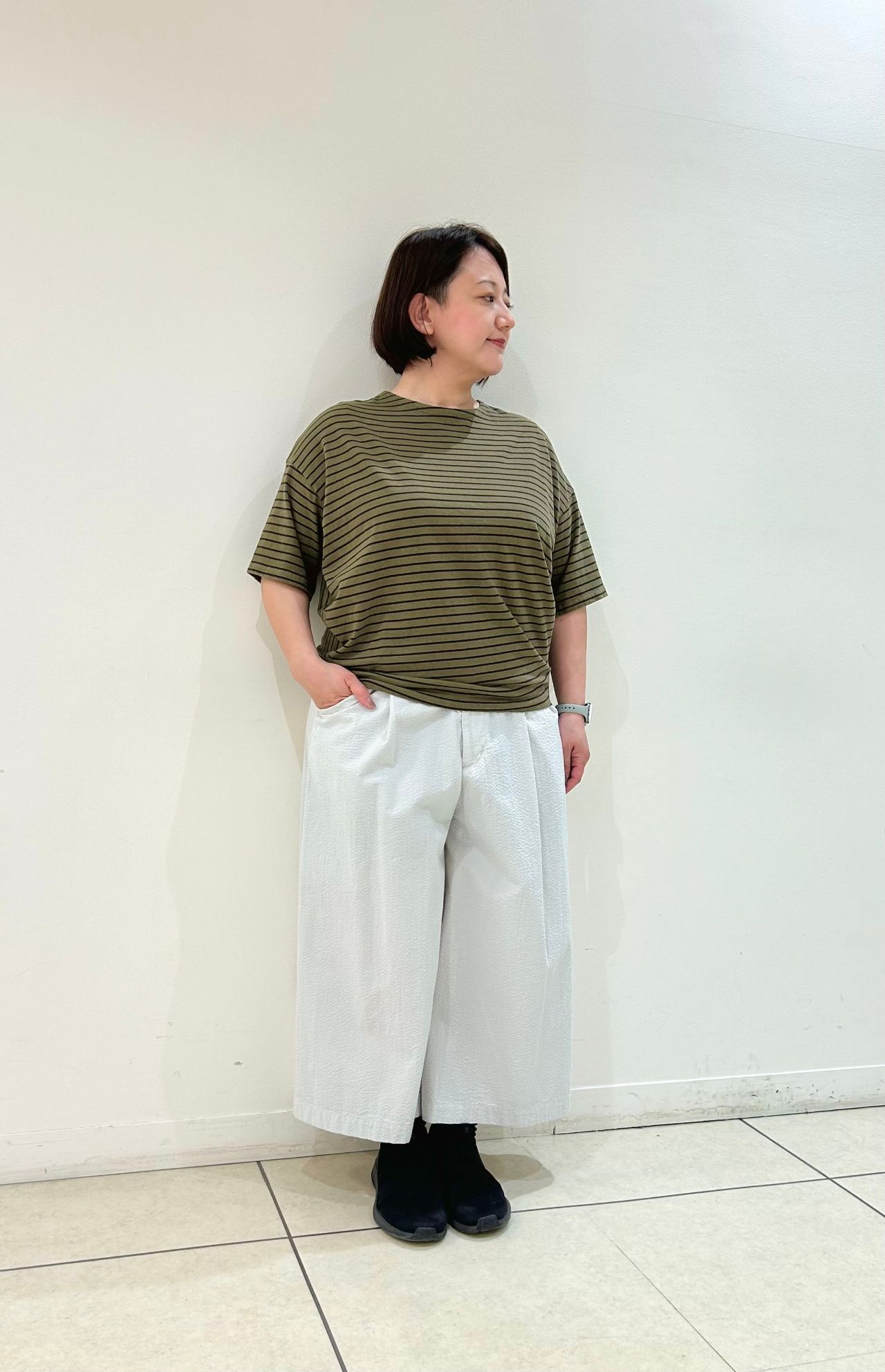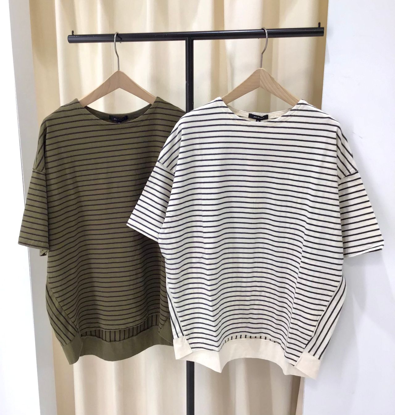 ボーダーの使い方がパドカレらしいおしゃれなカットソー。