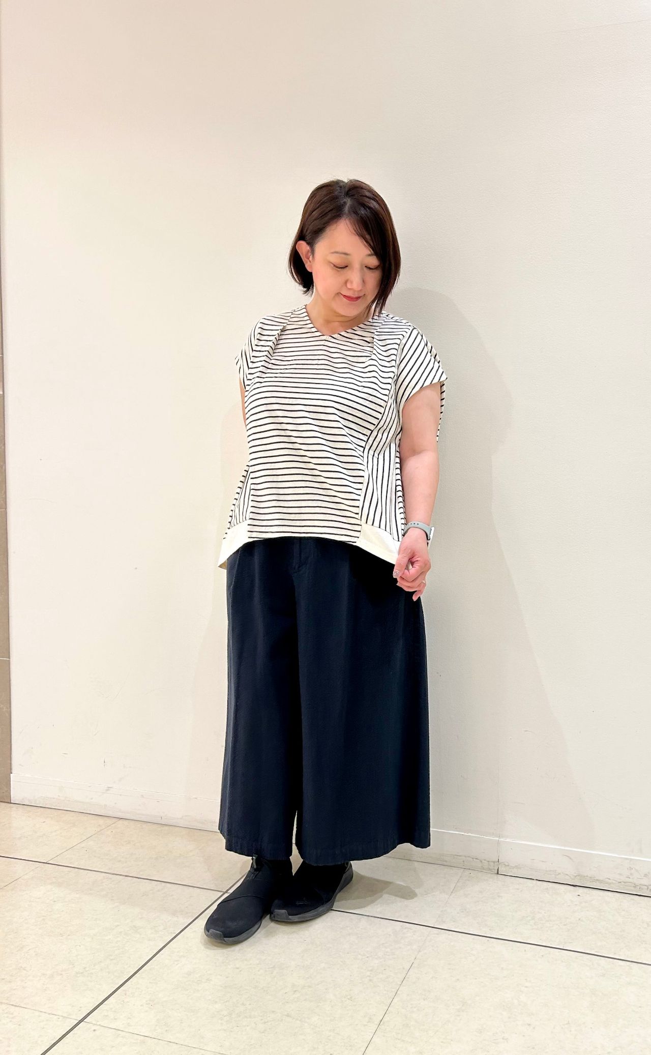 スッキリとしたシルエットで、ワイドパンツやスカートと相性抜群です。