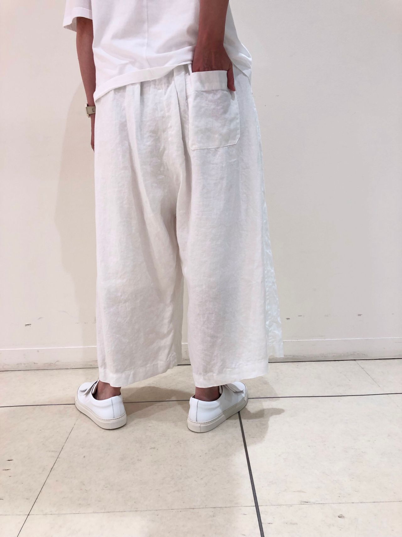 軽くサルエル風で後ろポケットが少し下気味に付いてる所がルーズ感があり素敵です。