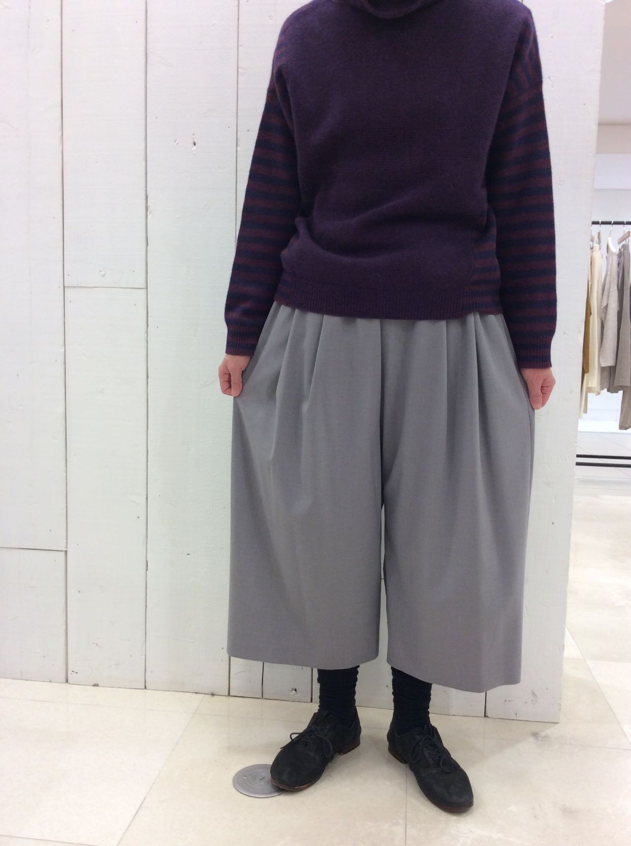 グレーとネイビーの定番カラーの色展開で、綺麗めなブラウスやニットでシンプルに合わせていただくのもおすめです。