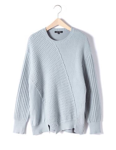 数種類の異なる柄を大胆にパッチワークして、大人の遊び心を表現したクルーネックプルオーバー。