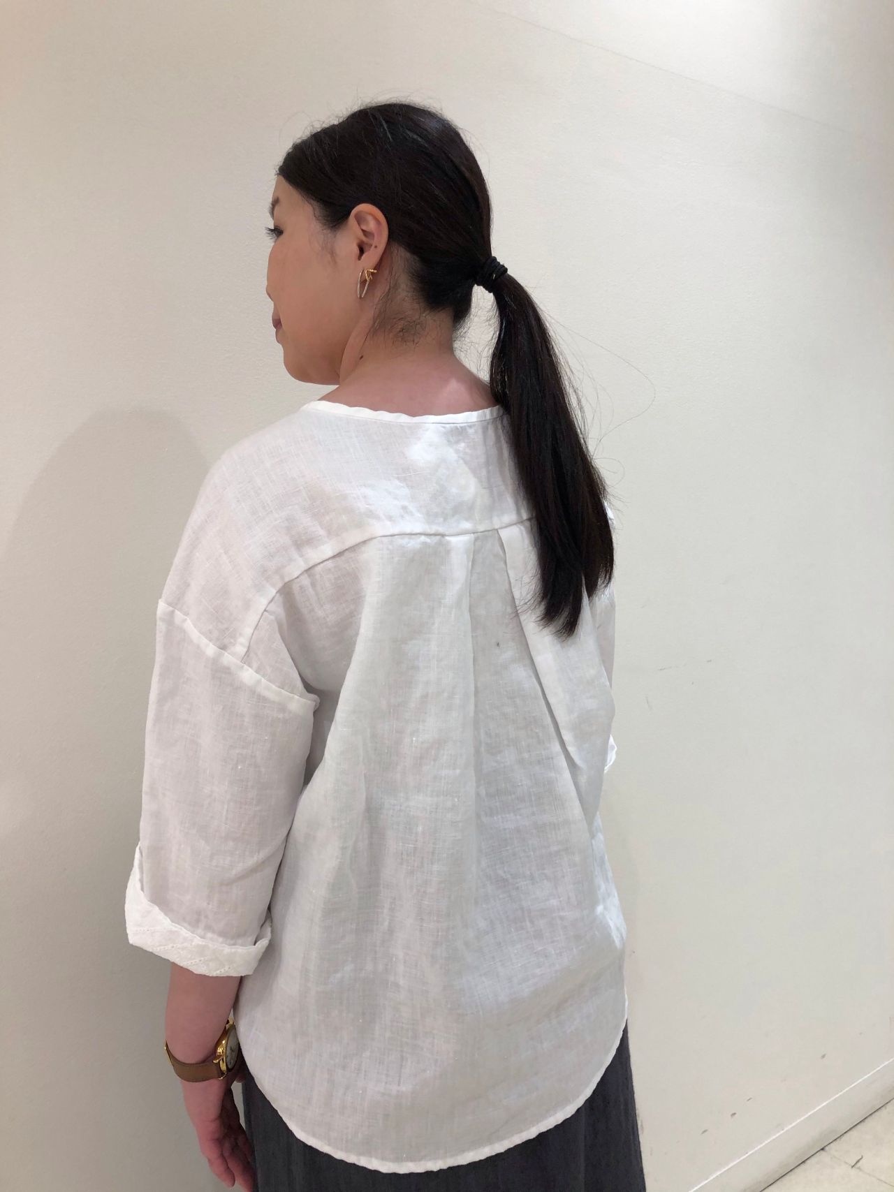 ブラウスやボリュームあるTシャツ、ロングカーディガン等、トップスを気にせずに合わせやすいアイテムです。