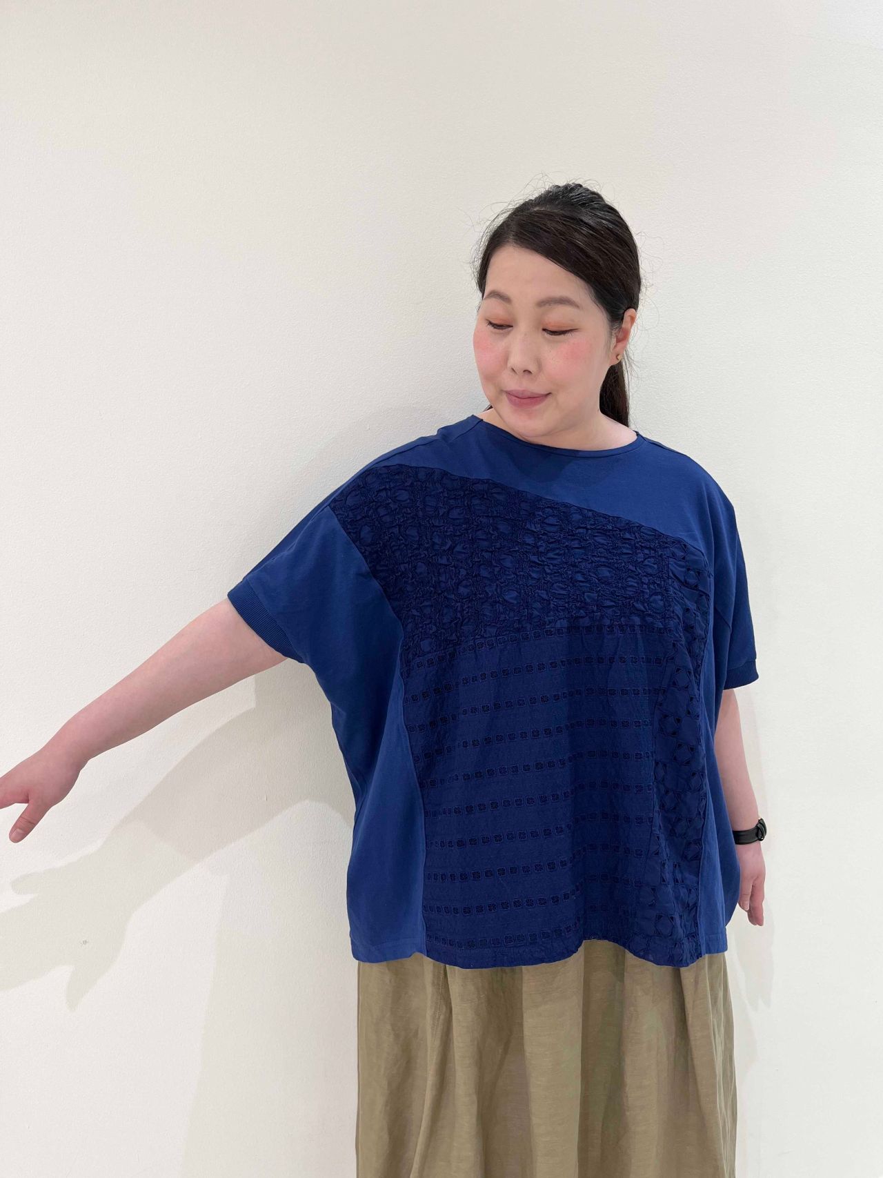 レースの軽い印象が涼し気な雰囲気になるTシャツです。