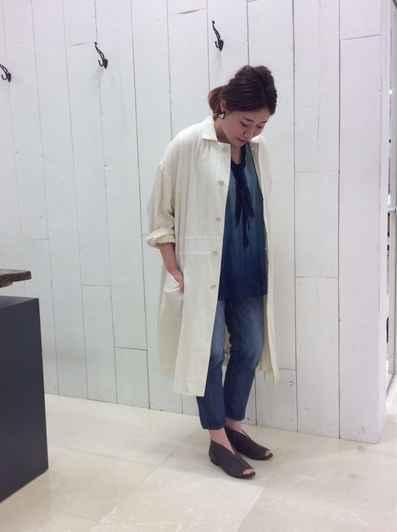 コットンリネンドビーコート no.9502 col.ホワイト(着用) size.36 ¥42,120