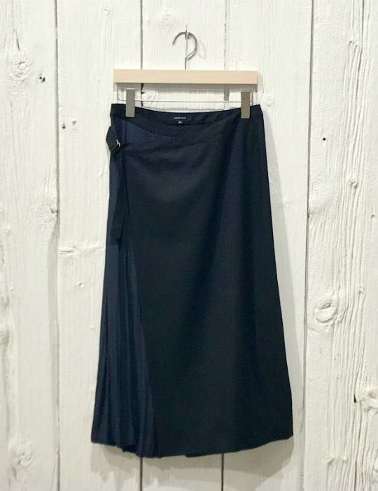 プリーツがアシンメトリーに出た、ミモレ丈スカート。