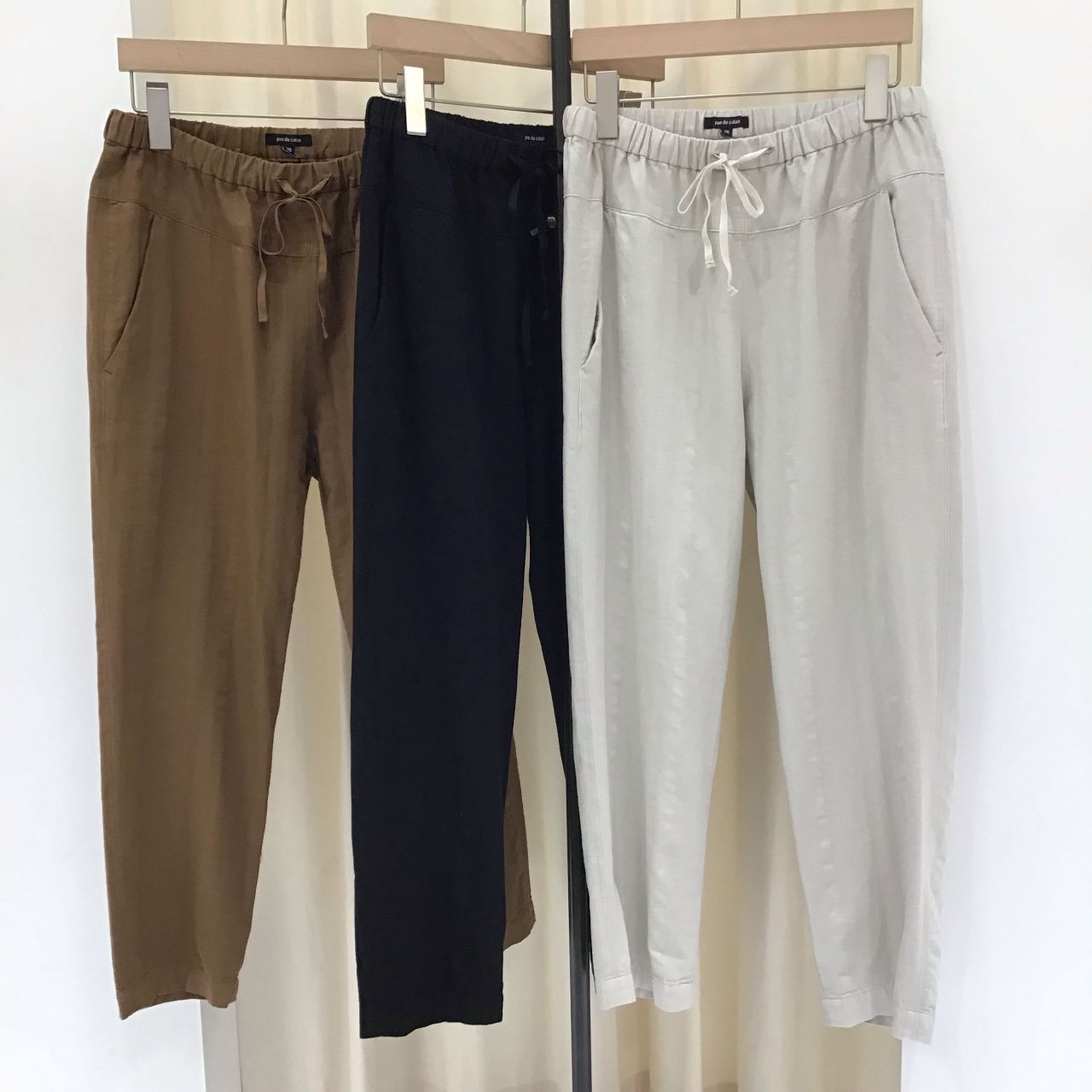 コットン100%のナチュラルな素材感のテーパードパンツ。