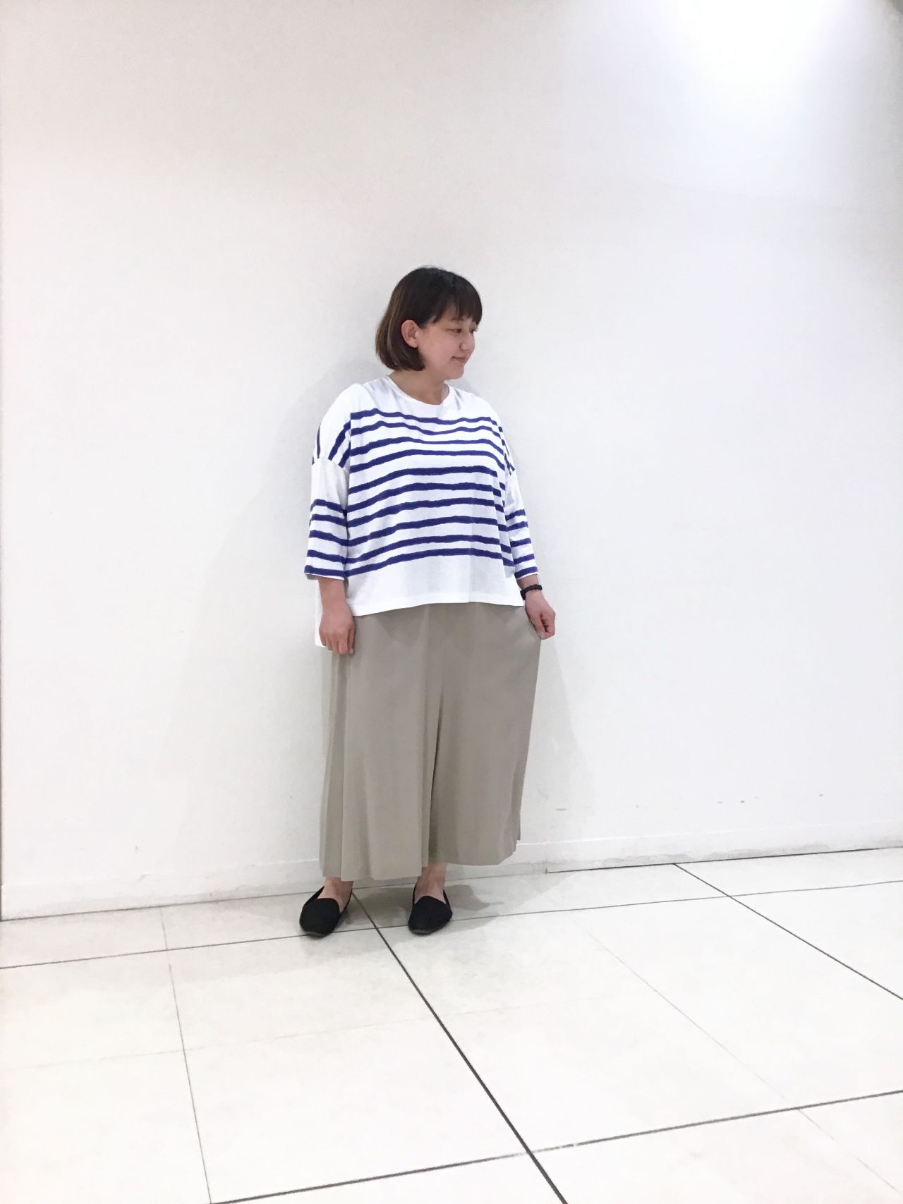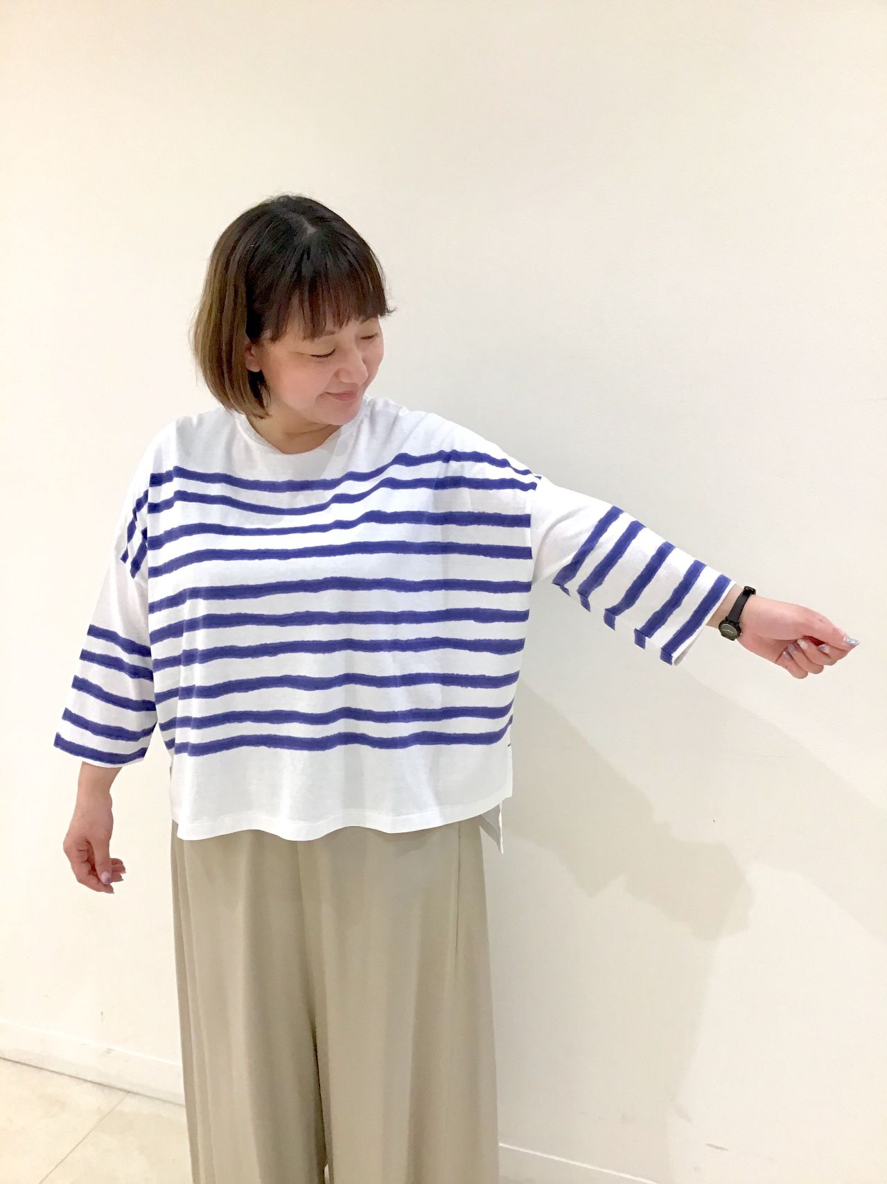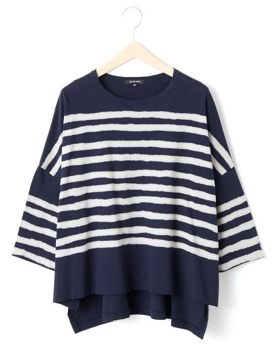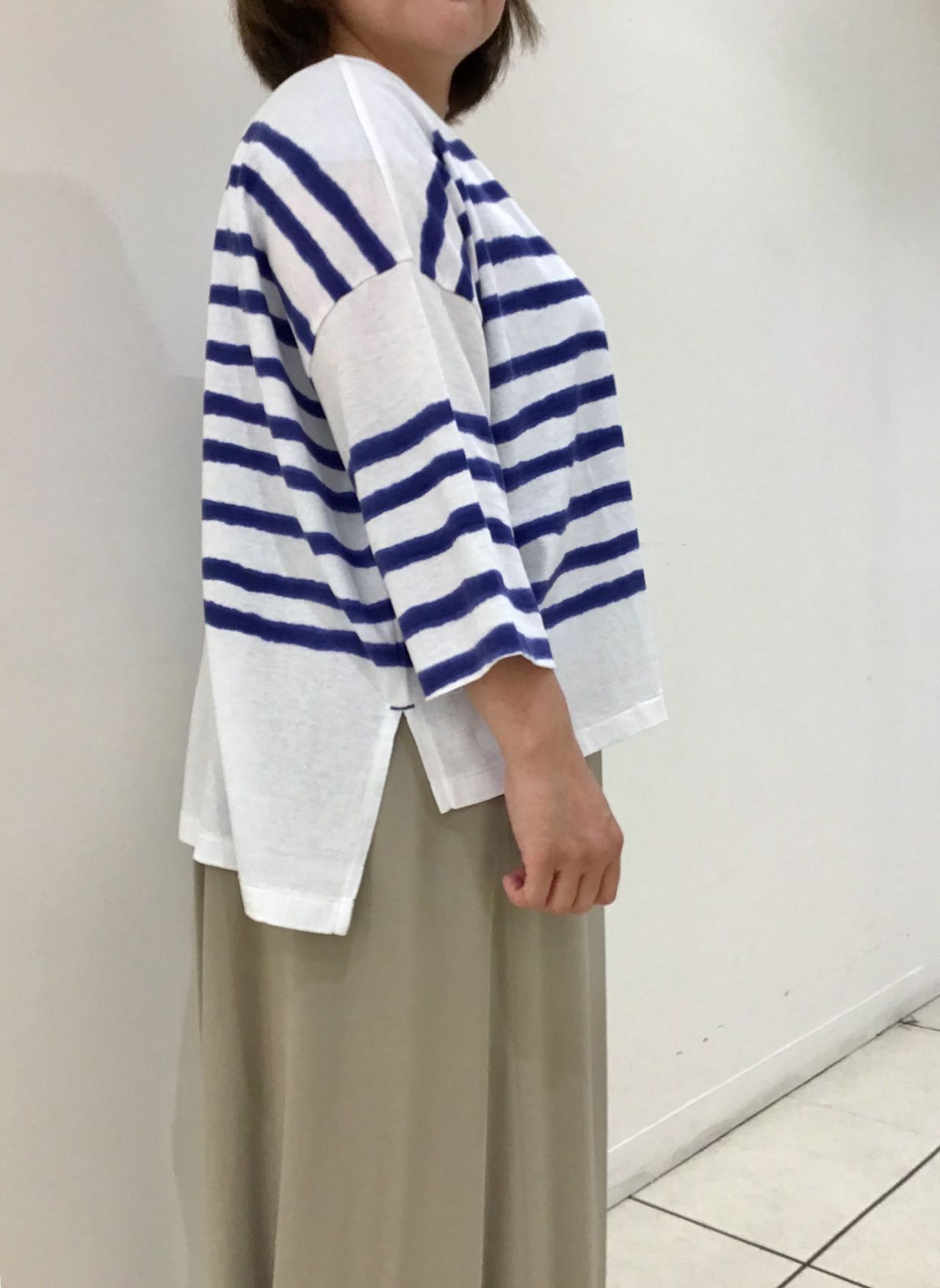 ゆったりした身幅と、にじみのあるボーダーで子供っぽく見えないデザインになってます。
