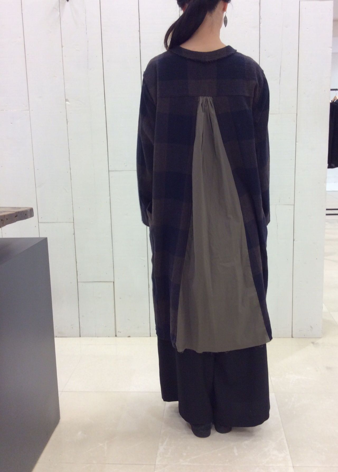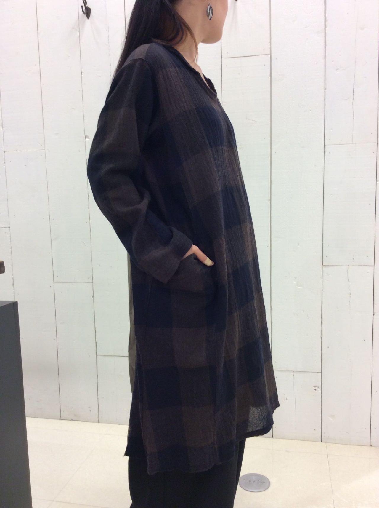 大柄を大胆に使用し、ベーシックな色ながらも、1枚で存在感のある仕上がりになっておりますよ。