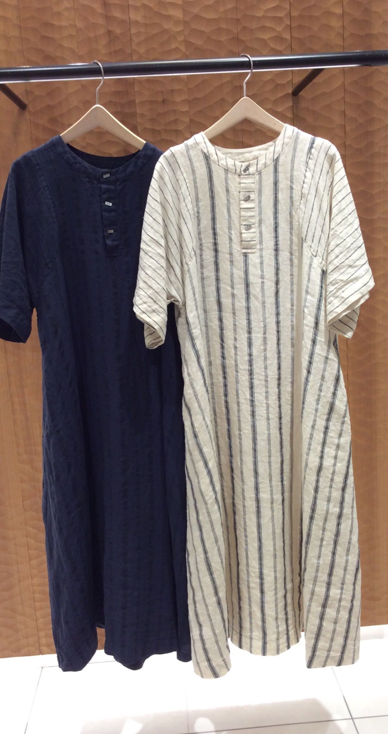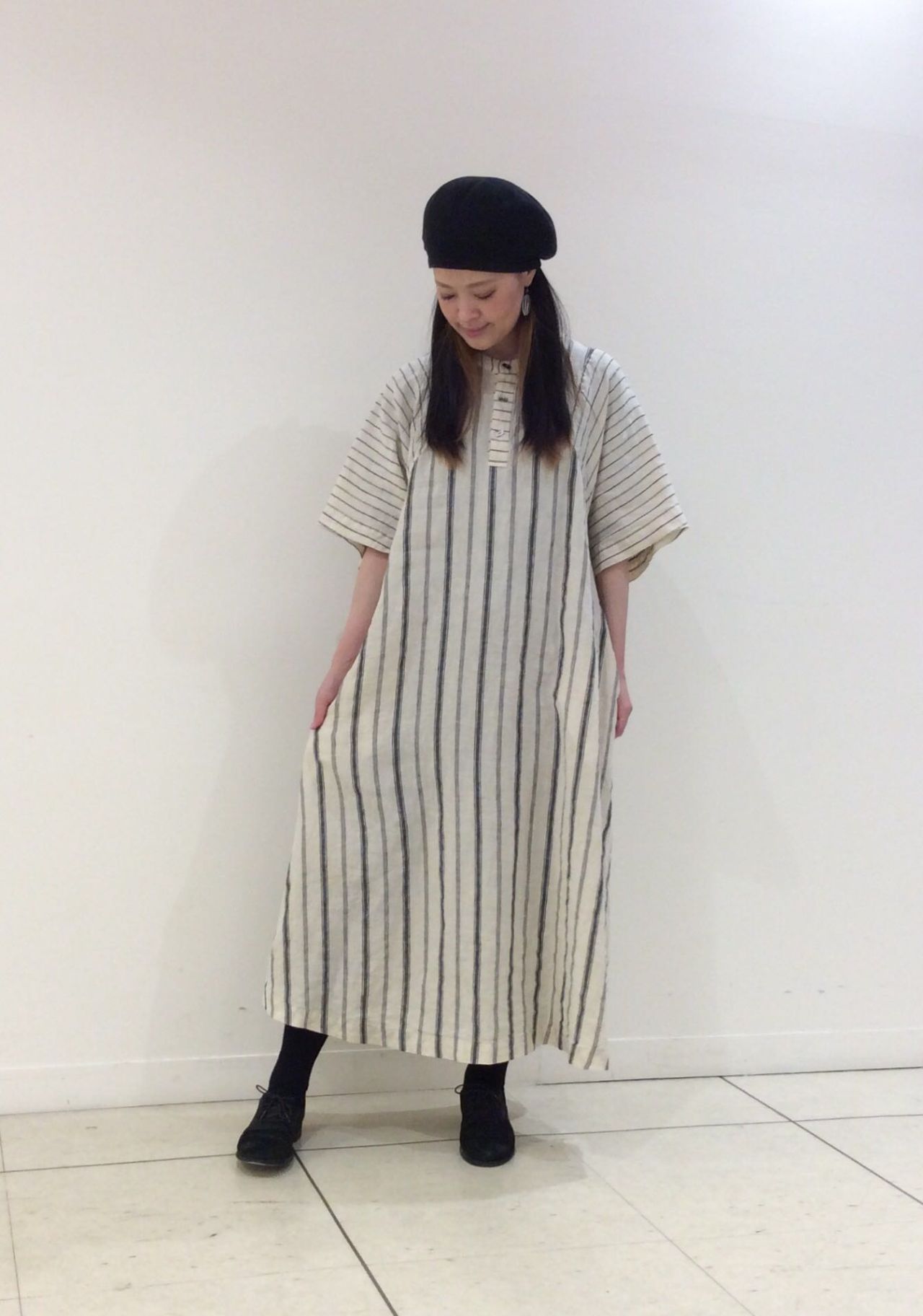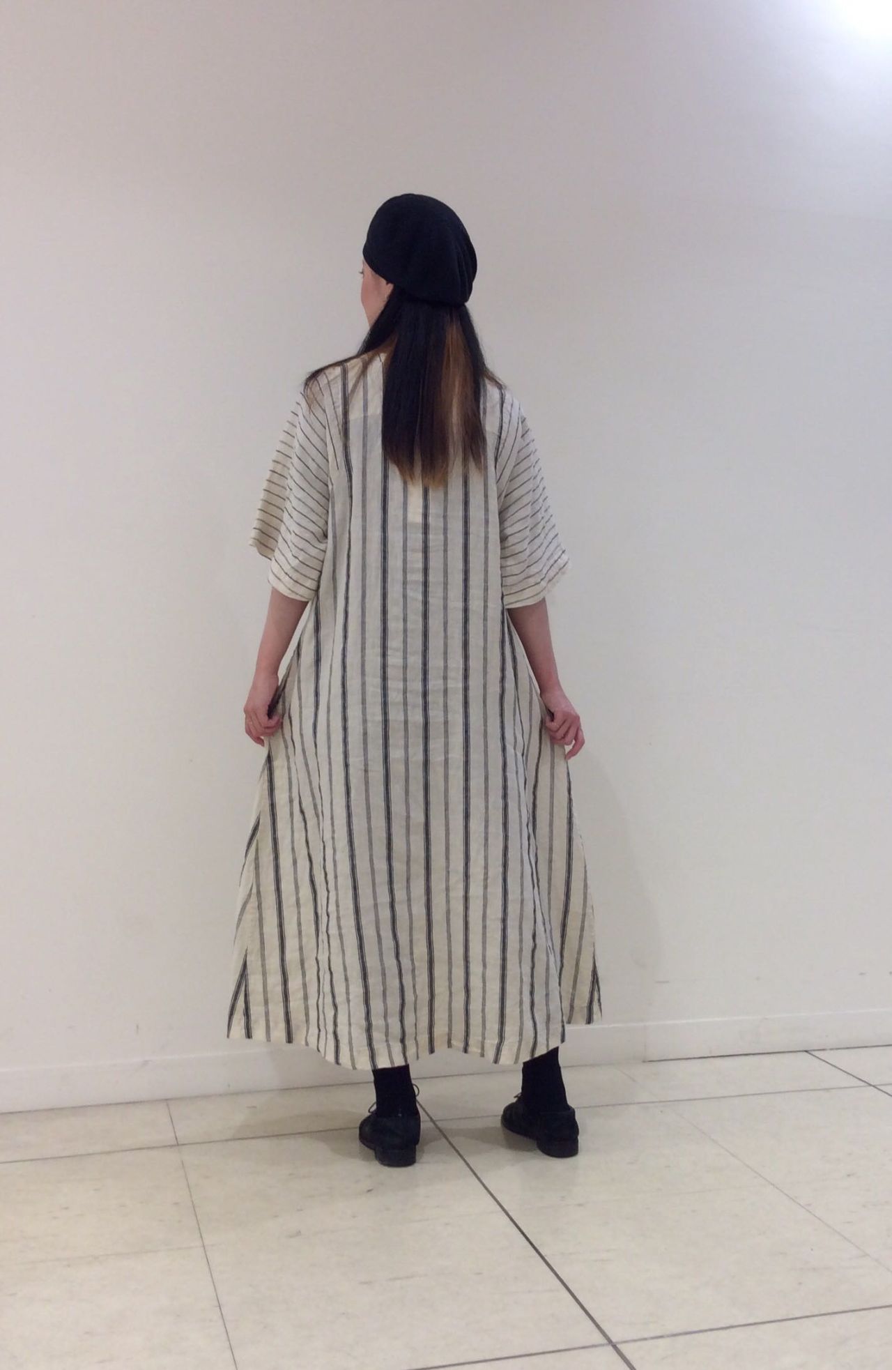 2つのストライプを組み合わせて柄の違いが際立つ製品。製品反応染めをすることでくたっとしたナチュラルな仕上がりになります。