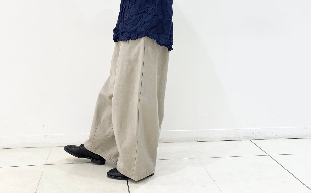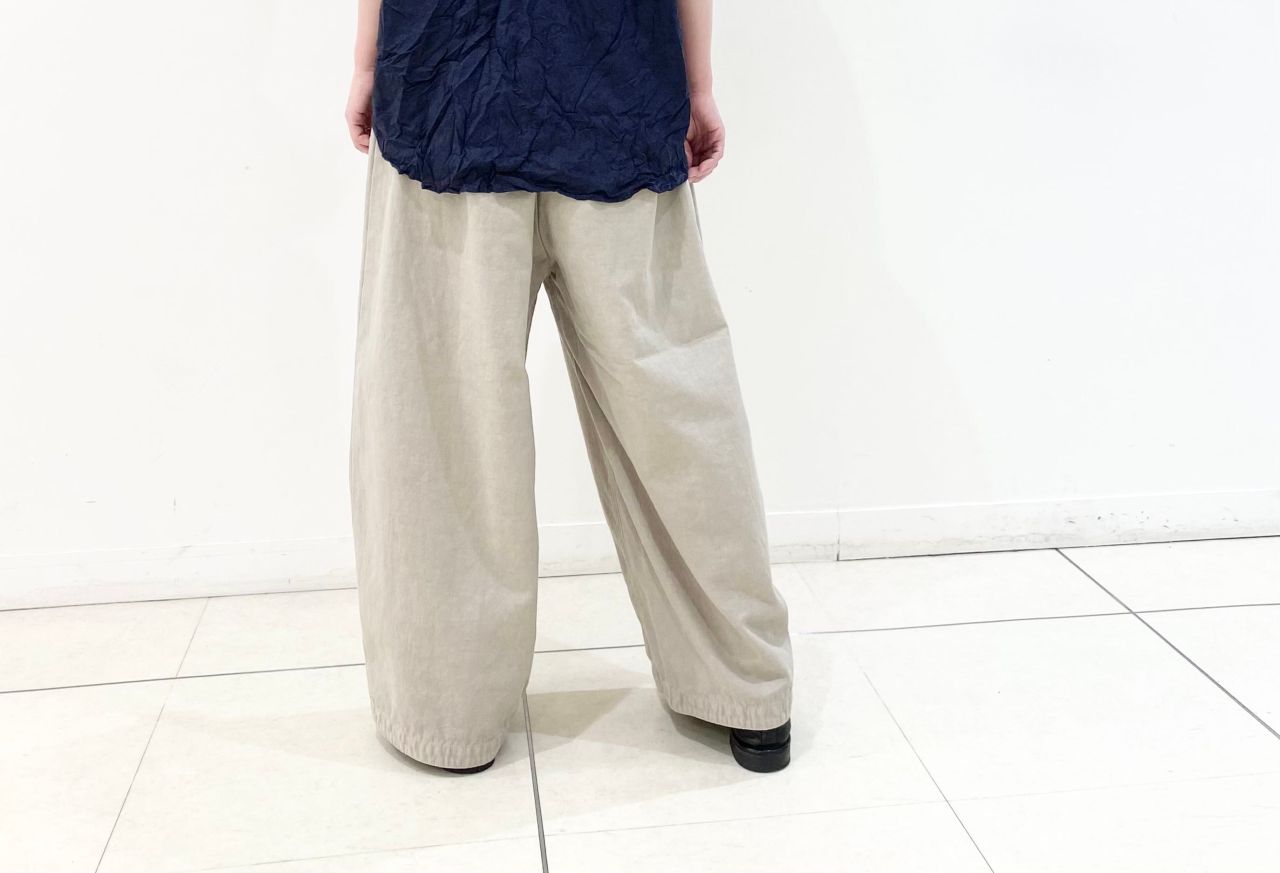 裾にダーツを入れたバルーンパンツ。