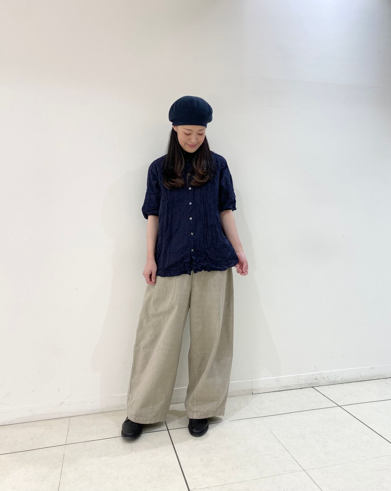 ハンドワッシャーにてシワを付けており、風合いが柔らかな印象になりますなります。