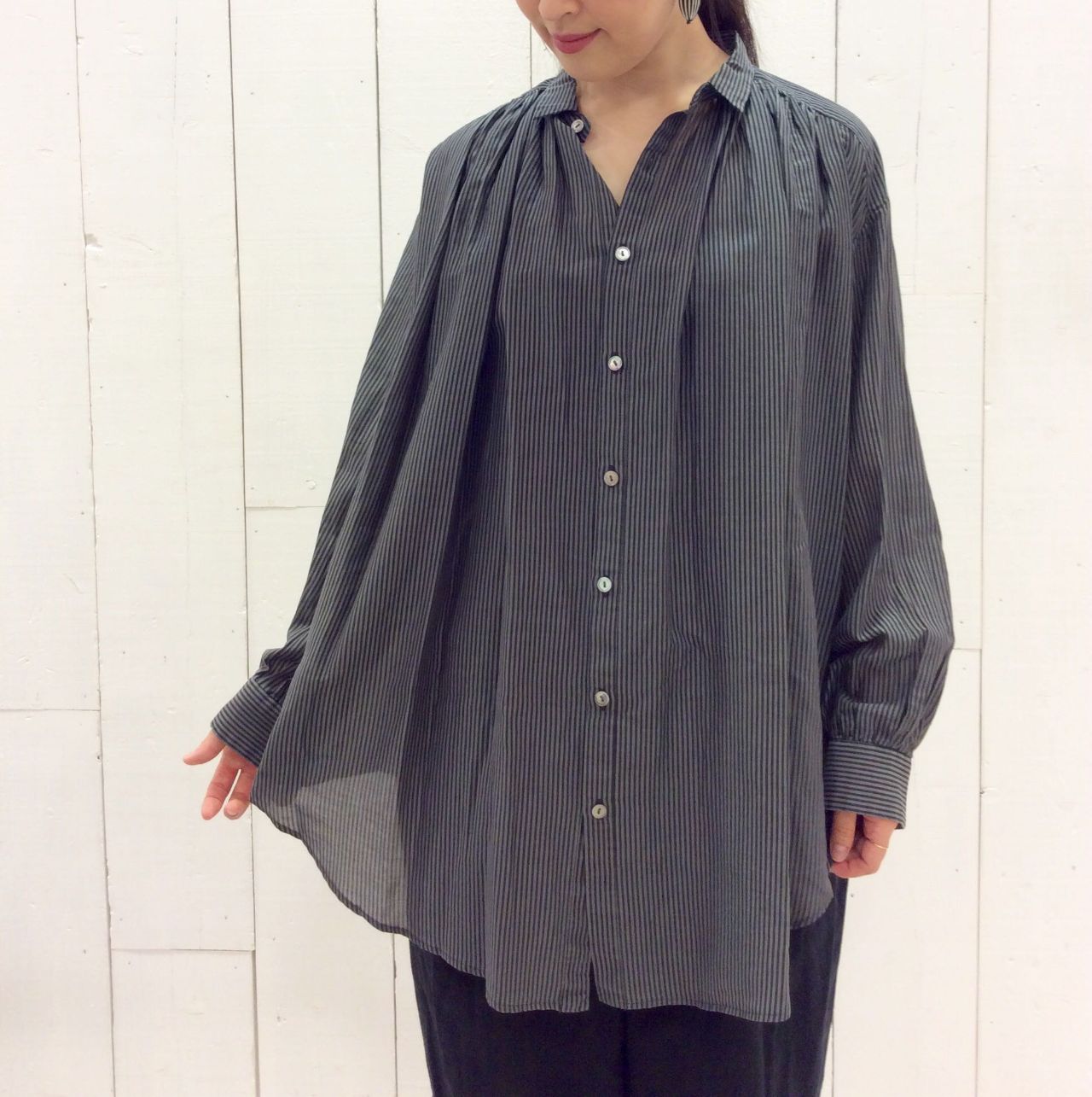 たっぷりとしたギャザーオーバーブラウスです。
