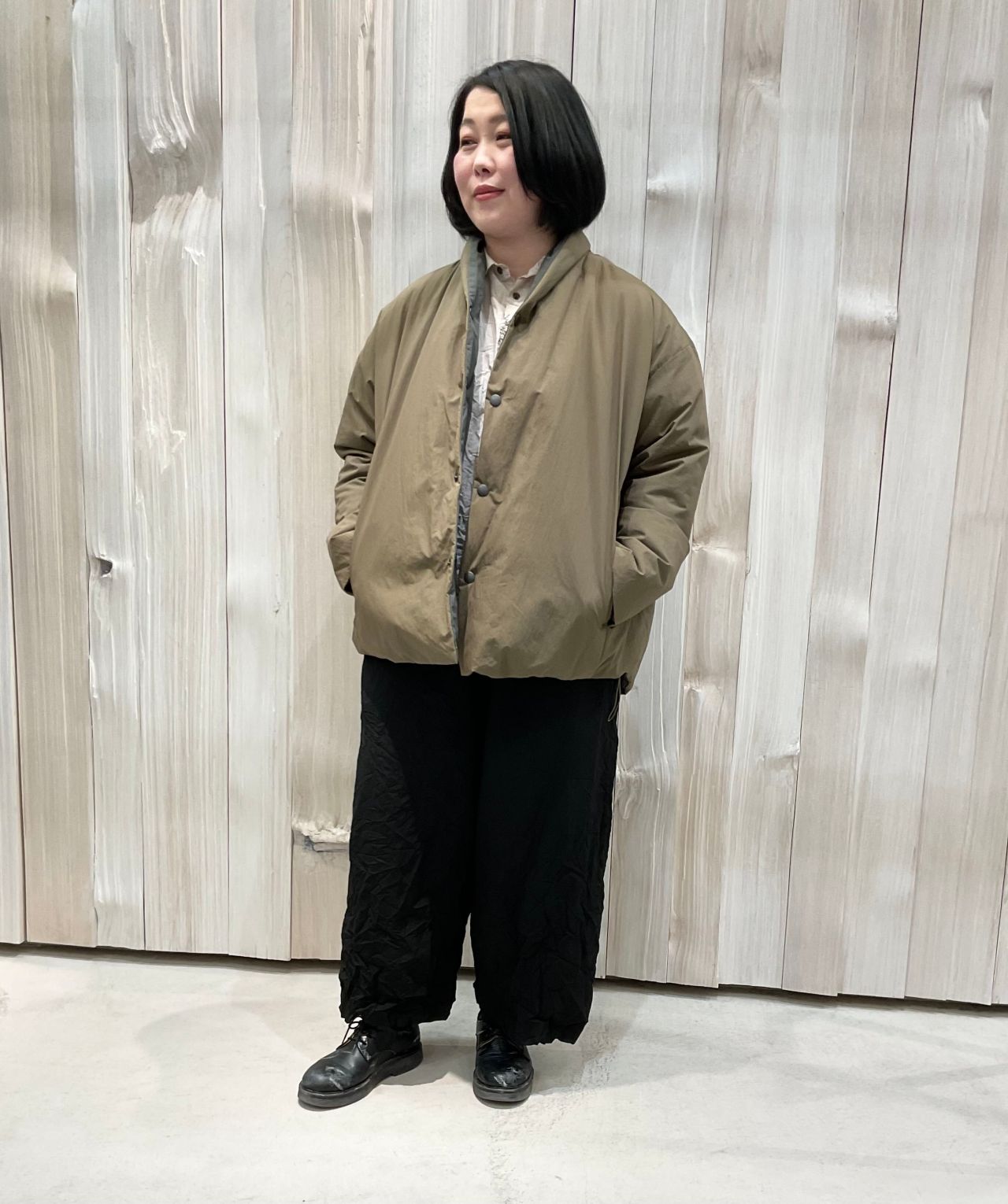 ダウンジャケットはリバーシブルでその日のコーディネートに合わせやすいです。