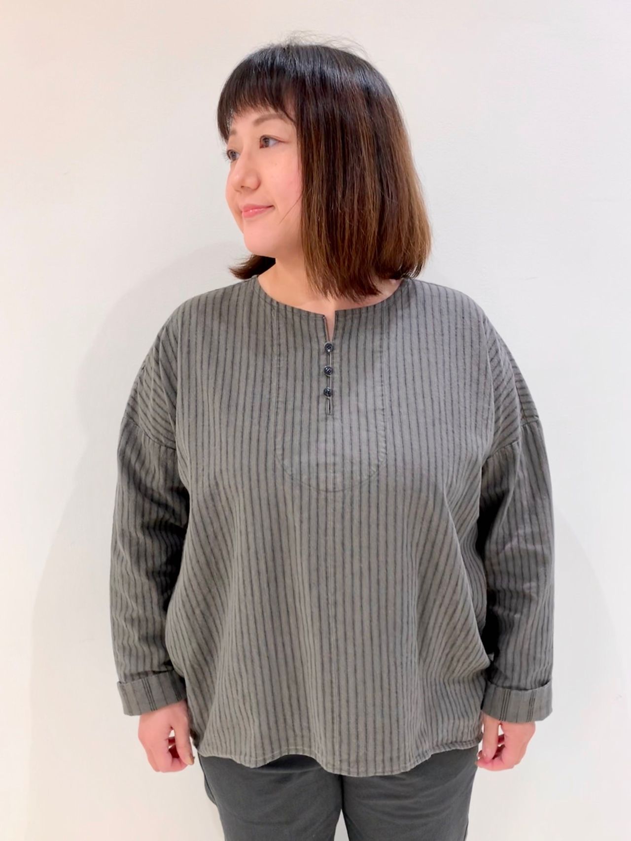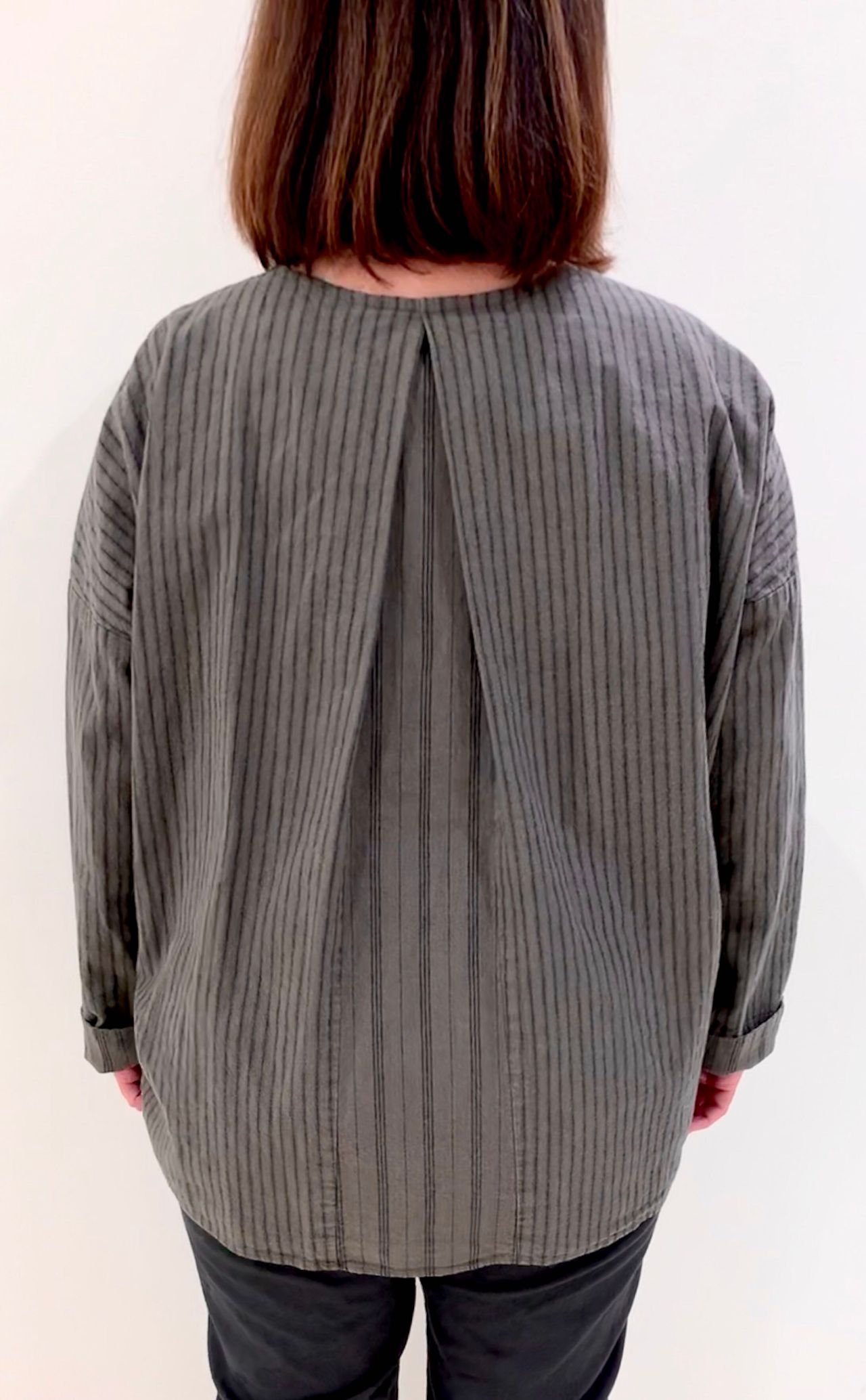 後ろのタック部分と、袖口を折り返すと見えるストライプが可愛いです。