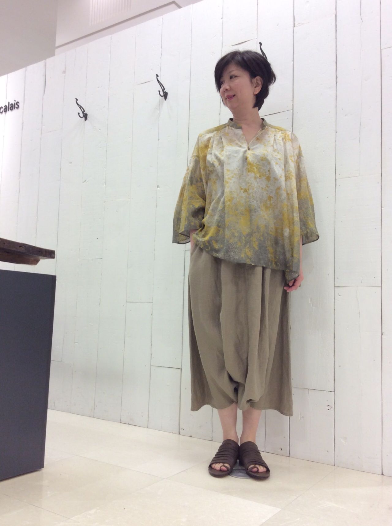 コーデネートはカタログを見てくださった方が「気になる」とのお声が多かった、ブラウスとパンツを合わせて見ました。