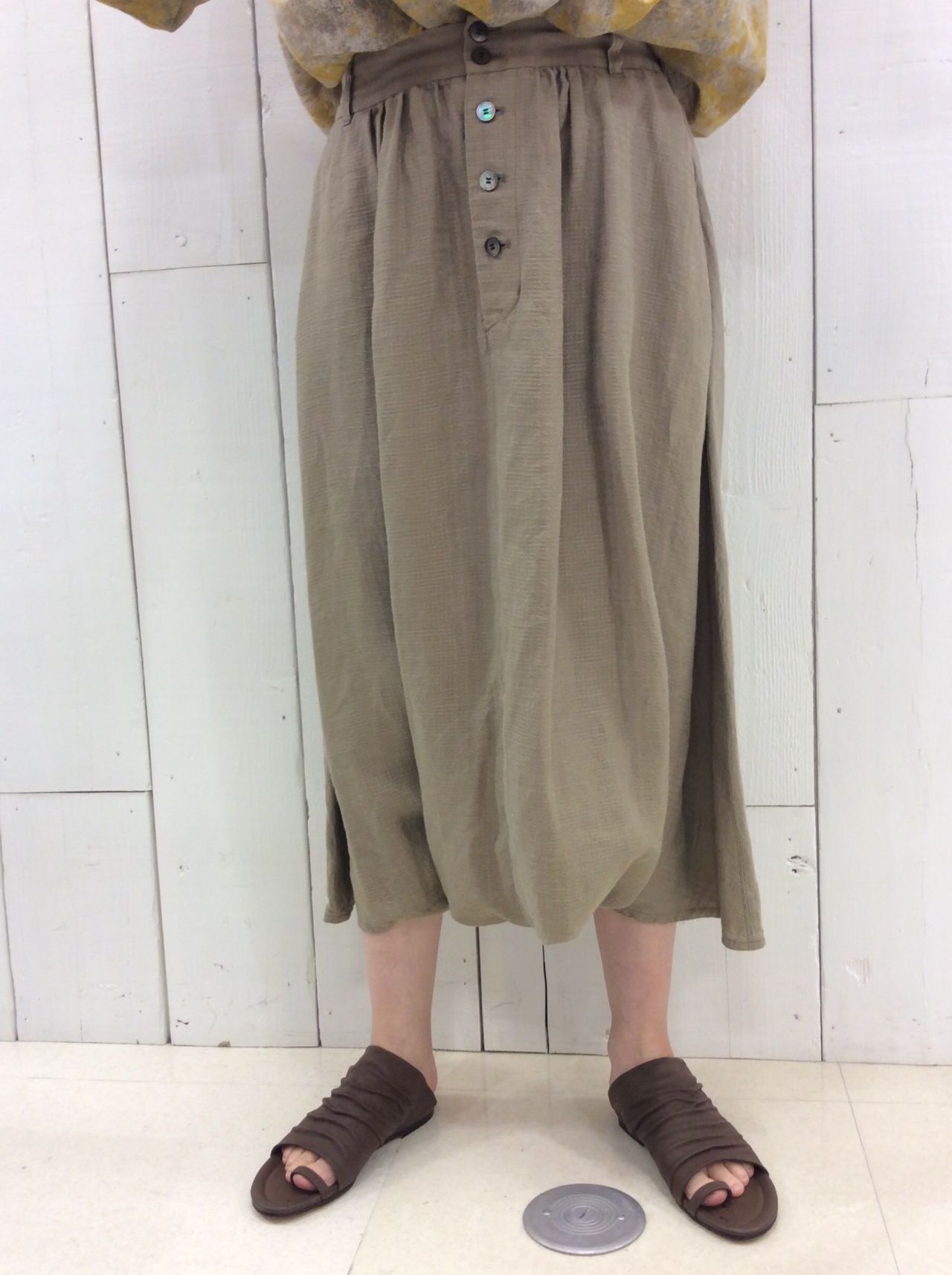一見ロングスカートに見える、サルエルパンツ。