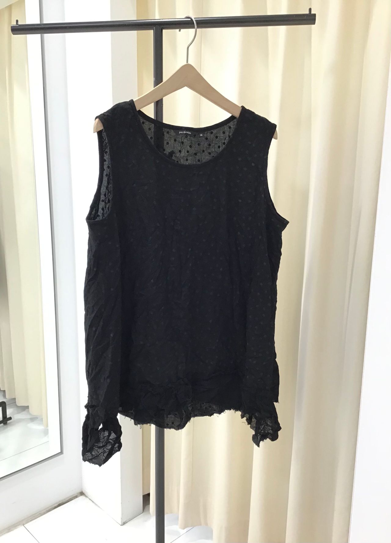 裾のフリルがアクセントになった、ノースリーブブラウス。