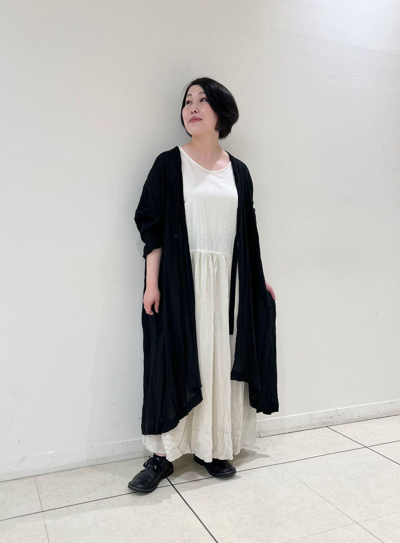 1枚で着ていただくだけでなく、コンパクトなサイズ感なのでアンダードレスとしてブラウスやニット上に重ねても◎。