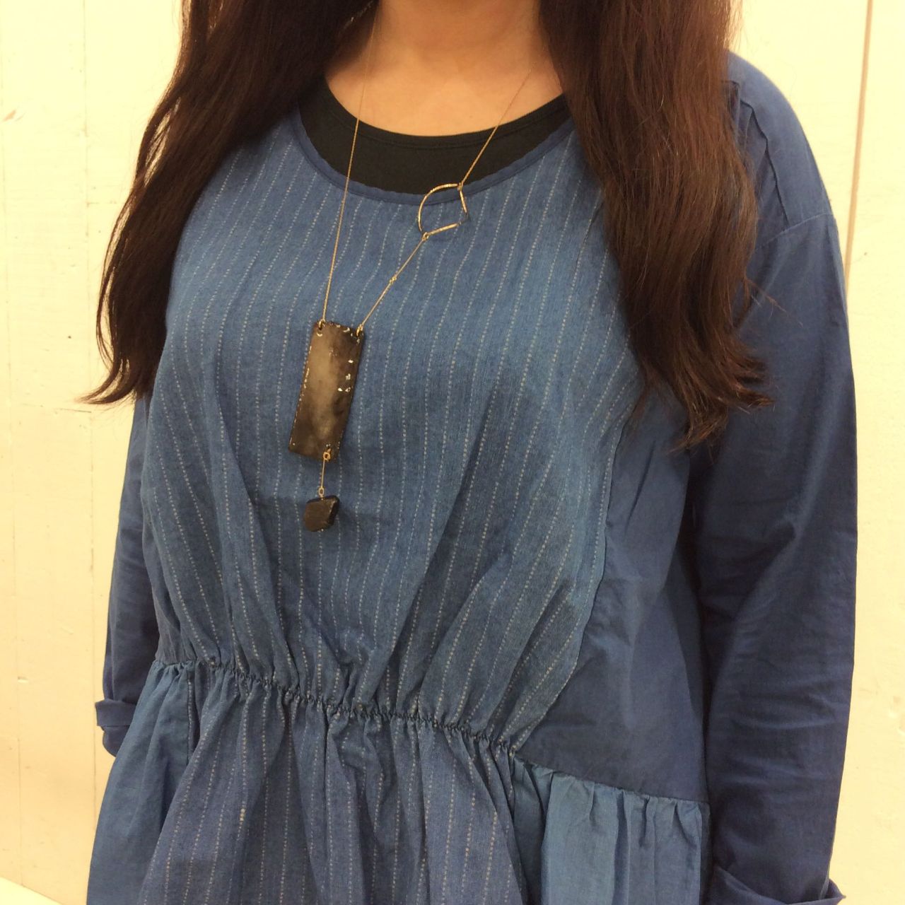 ロングネックレスno.0704 col.ブルー/ブラック(着用) ¥11,000