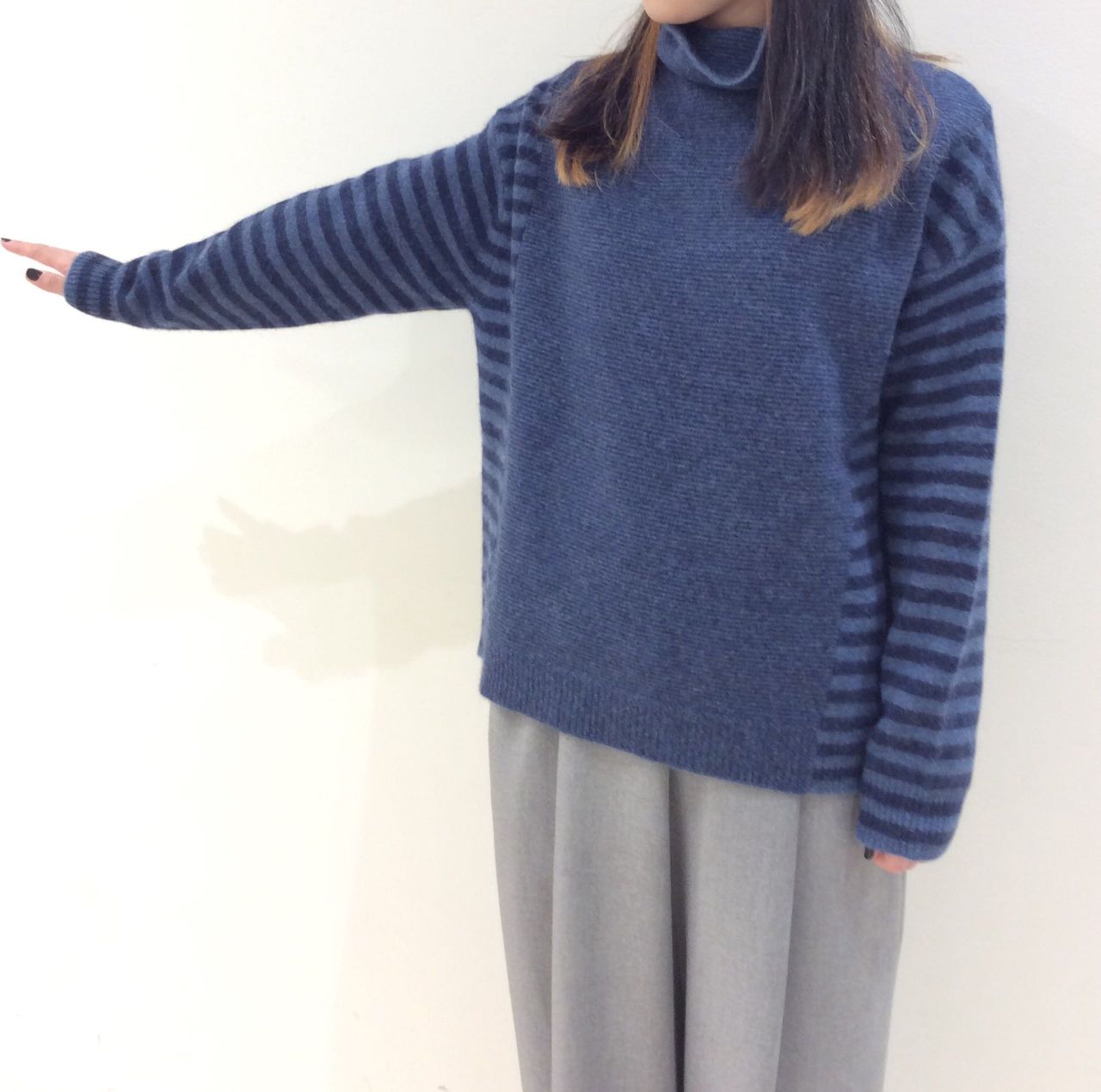 前身頃が細かいボーダーで後ろ身頃と袖は太めのボーダーになっております。