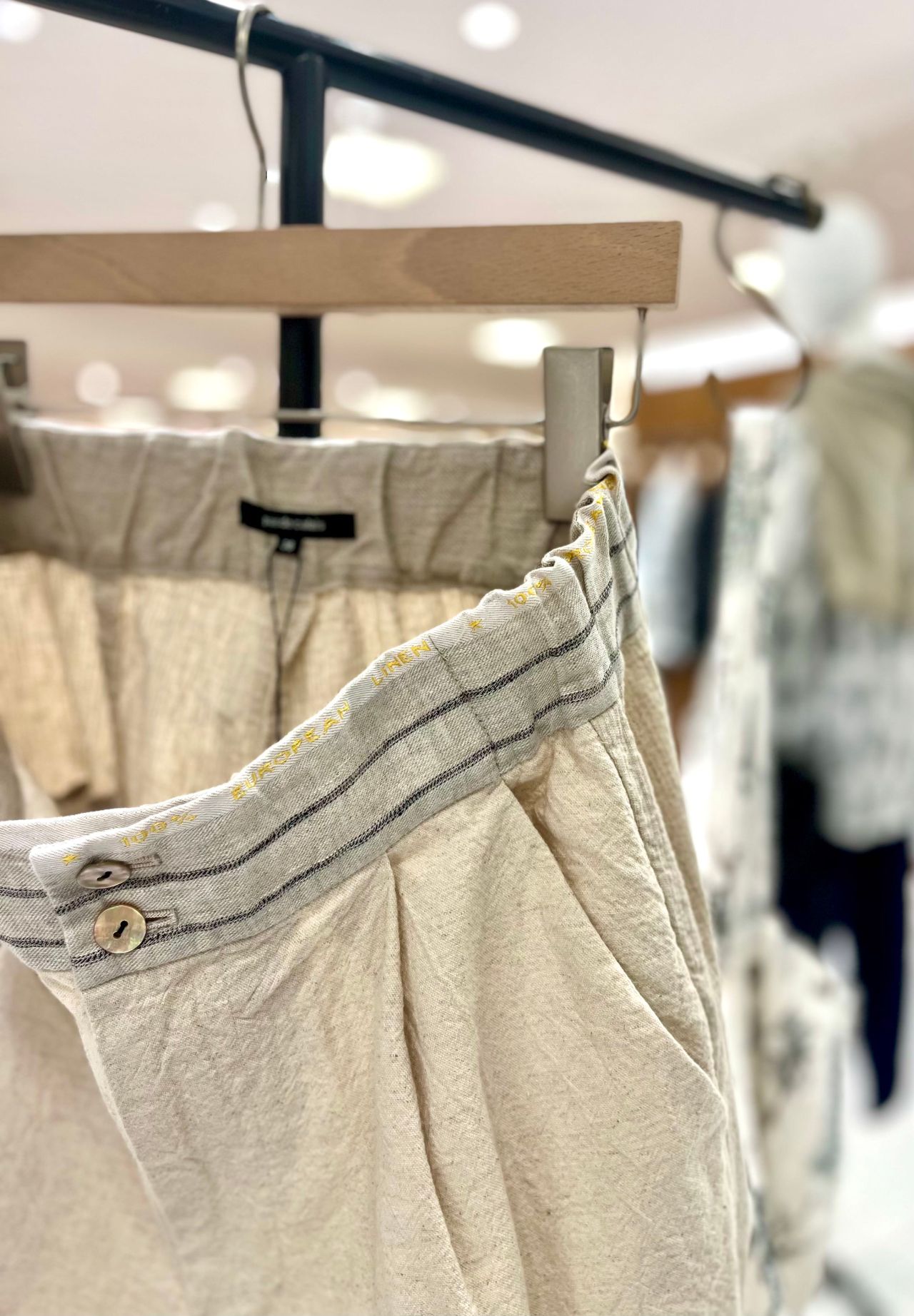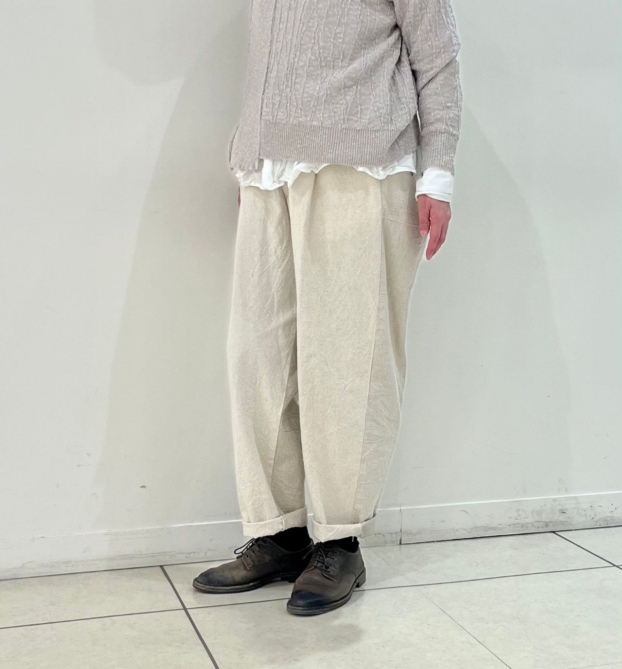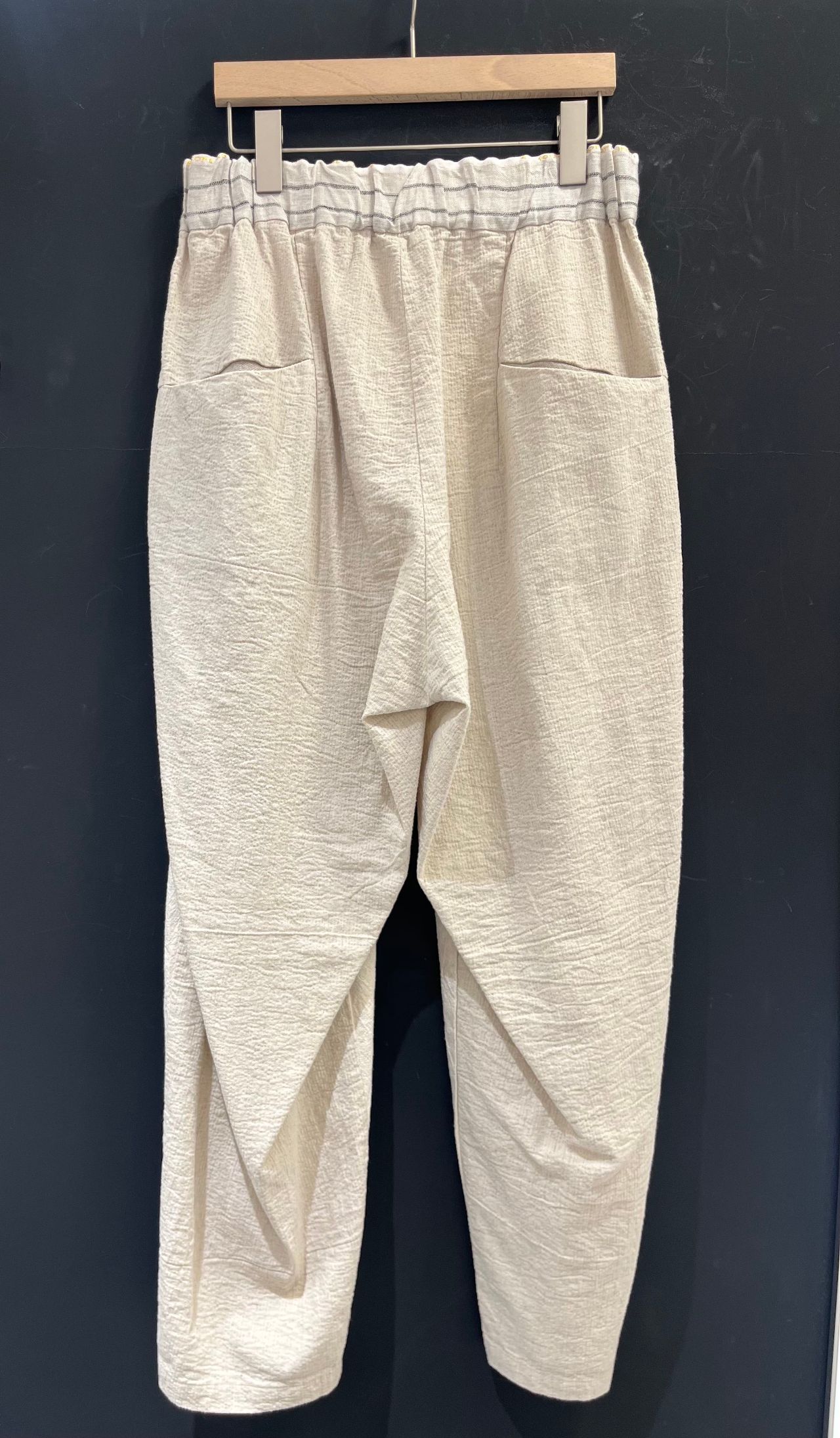 脇から後ろにかけてゴム仕様のテーパードパンツです。