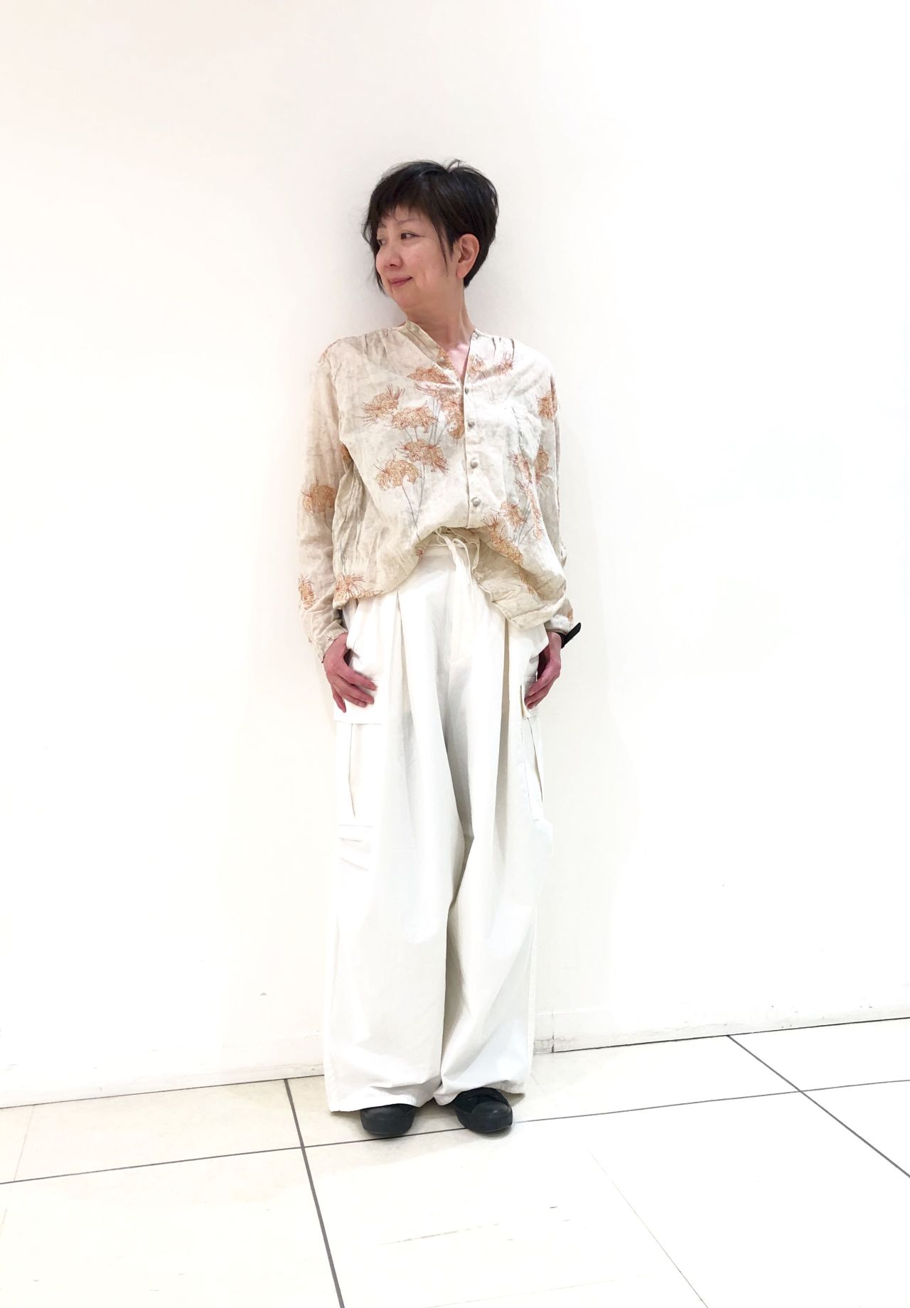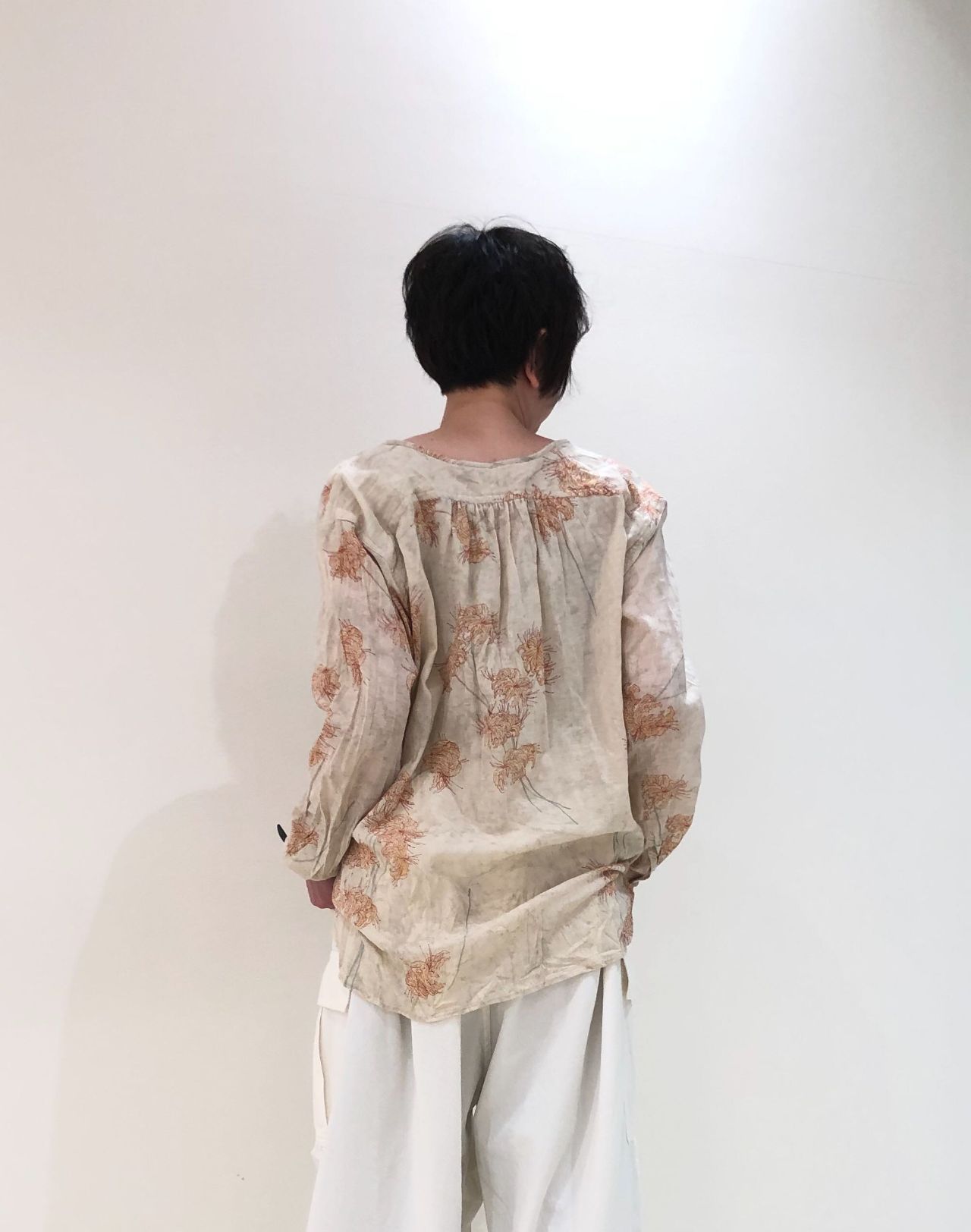今回のブログ連動企画の主役「higanbana」プリントのブラウス。