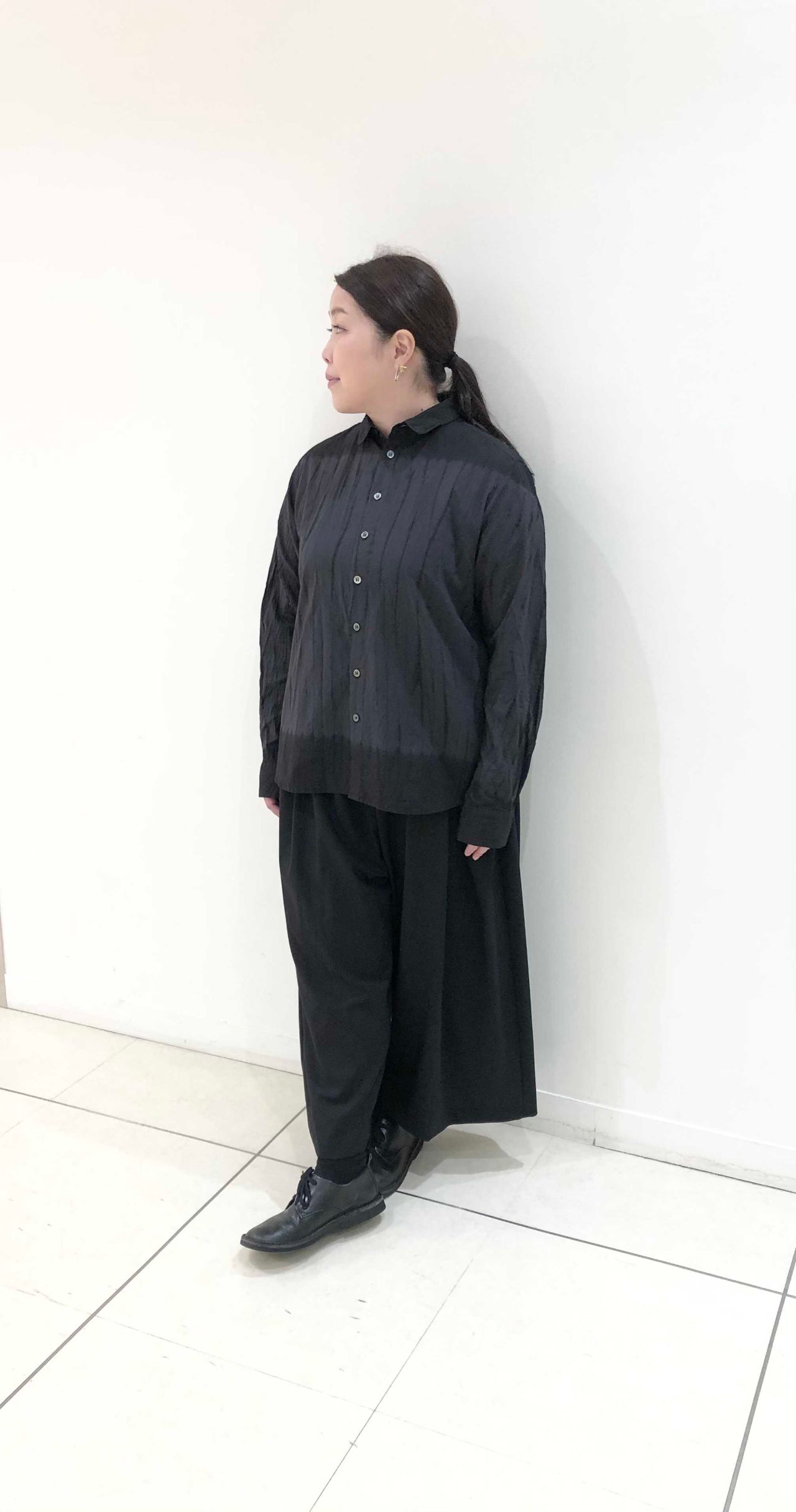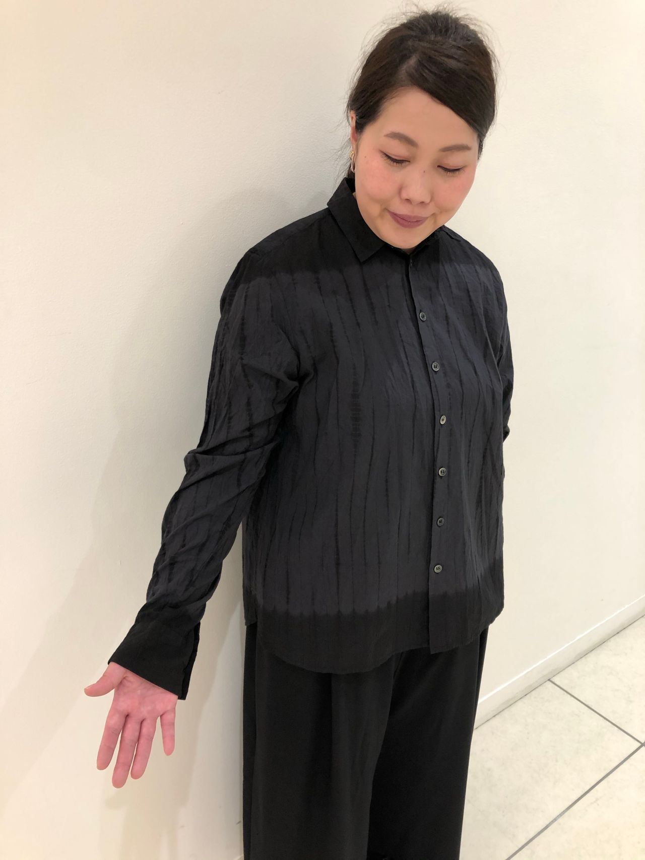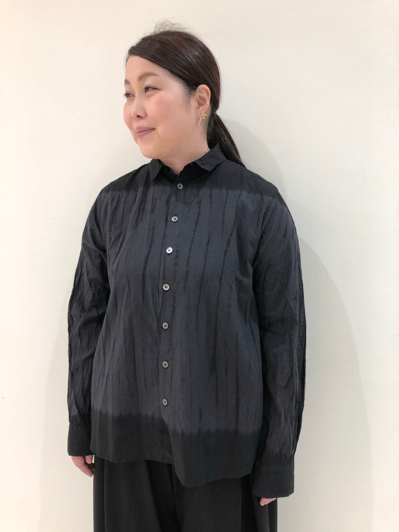 日本の伝統工芸「有松絞り」の一種である「流水竜巻絞り」という染めを施した、コンパクトなシルエットのブラウス。