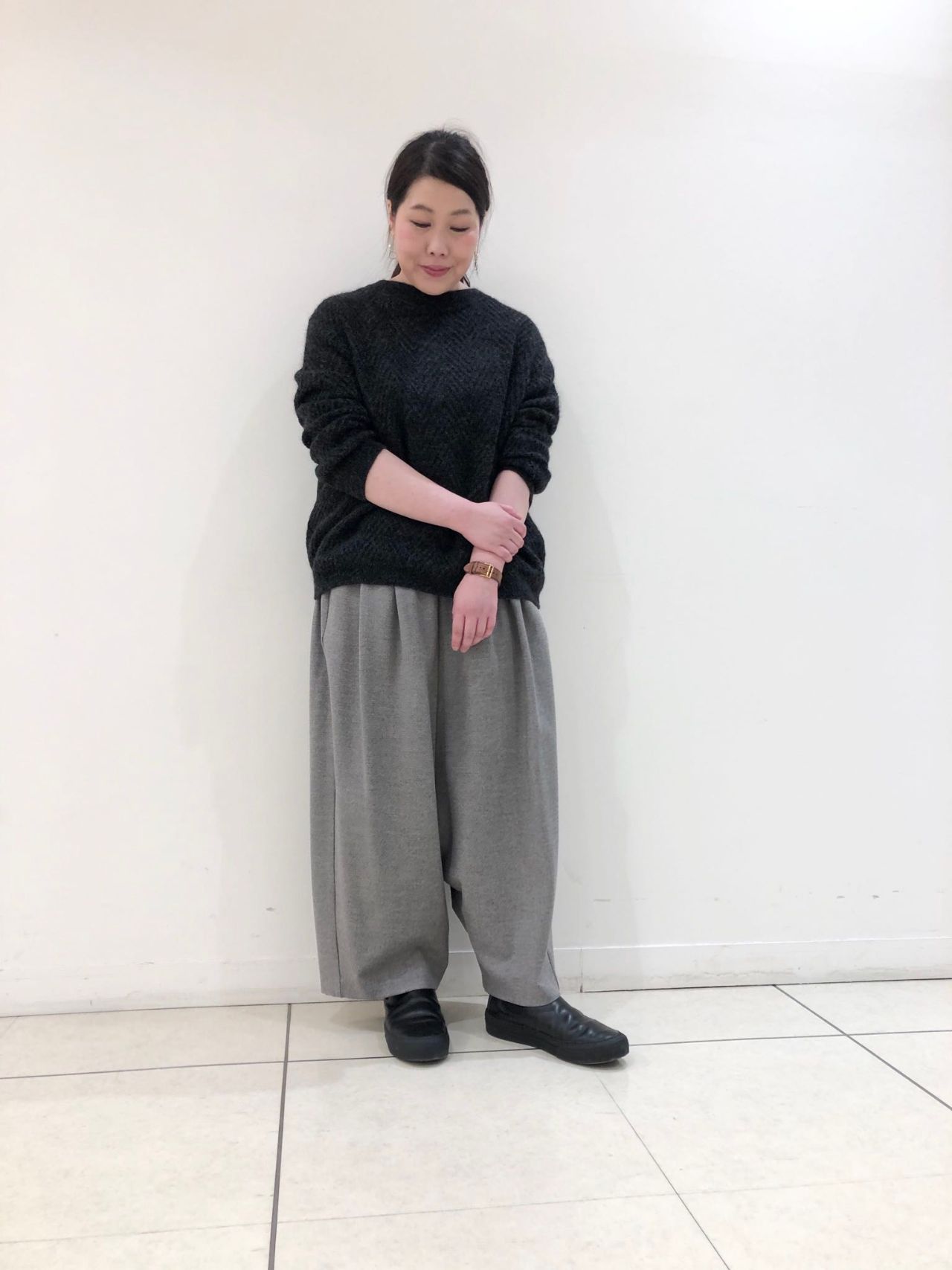 ジャストな丈感なので、ワイドパンツやロングスカートとボリュームあるボトムスに合わせやすいです。
