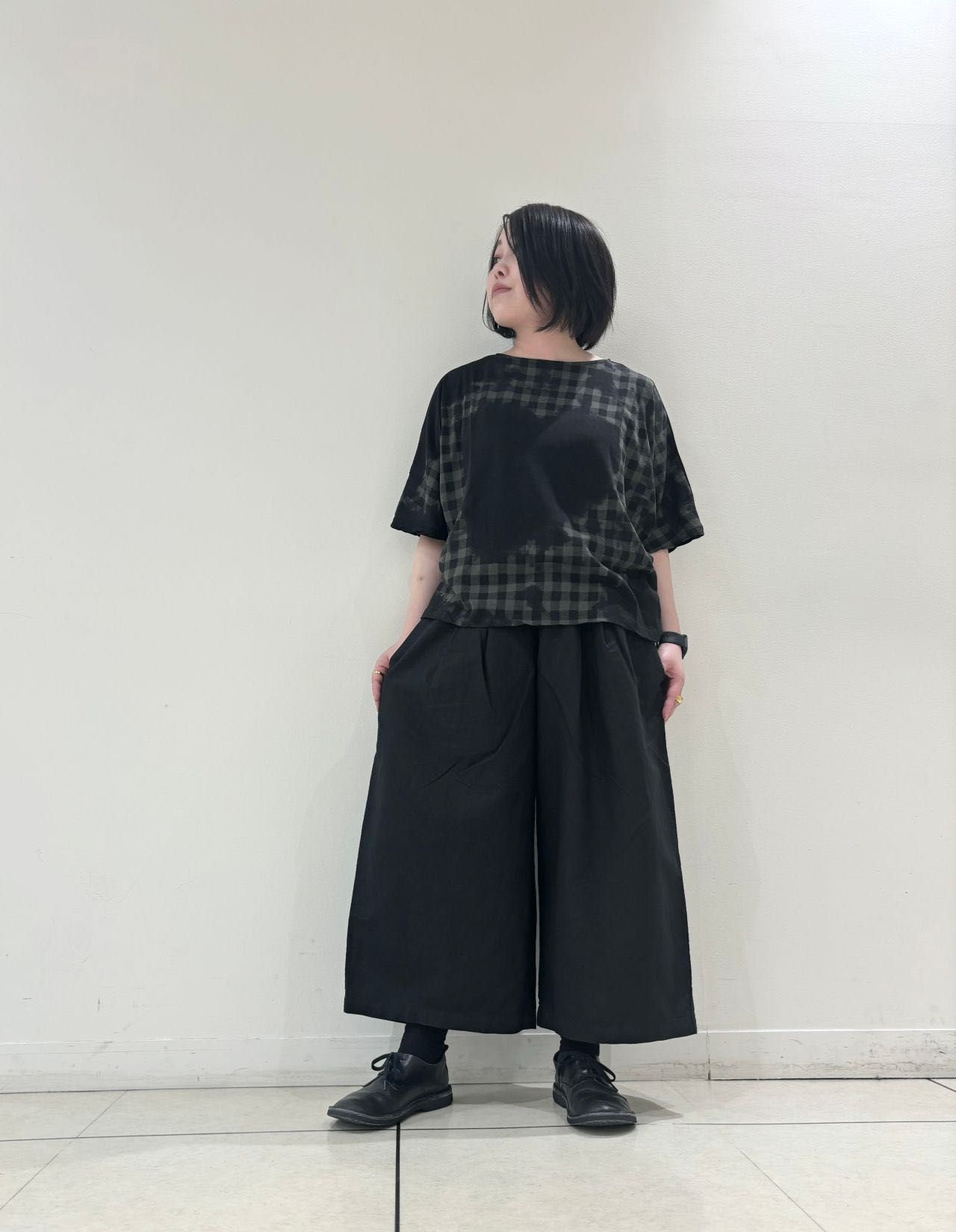 クルーネックにギャザーを入れた、リラックスブラウス。