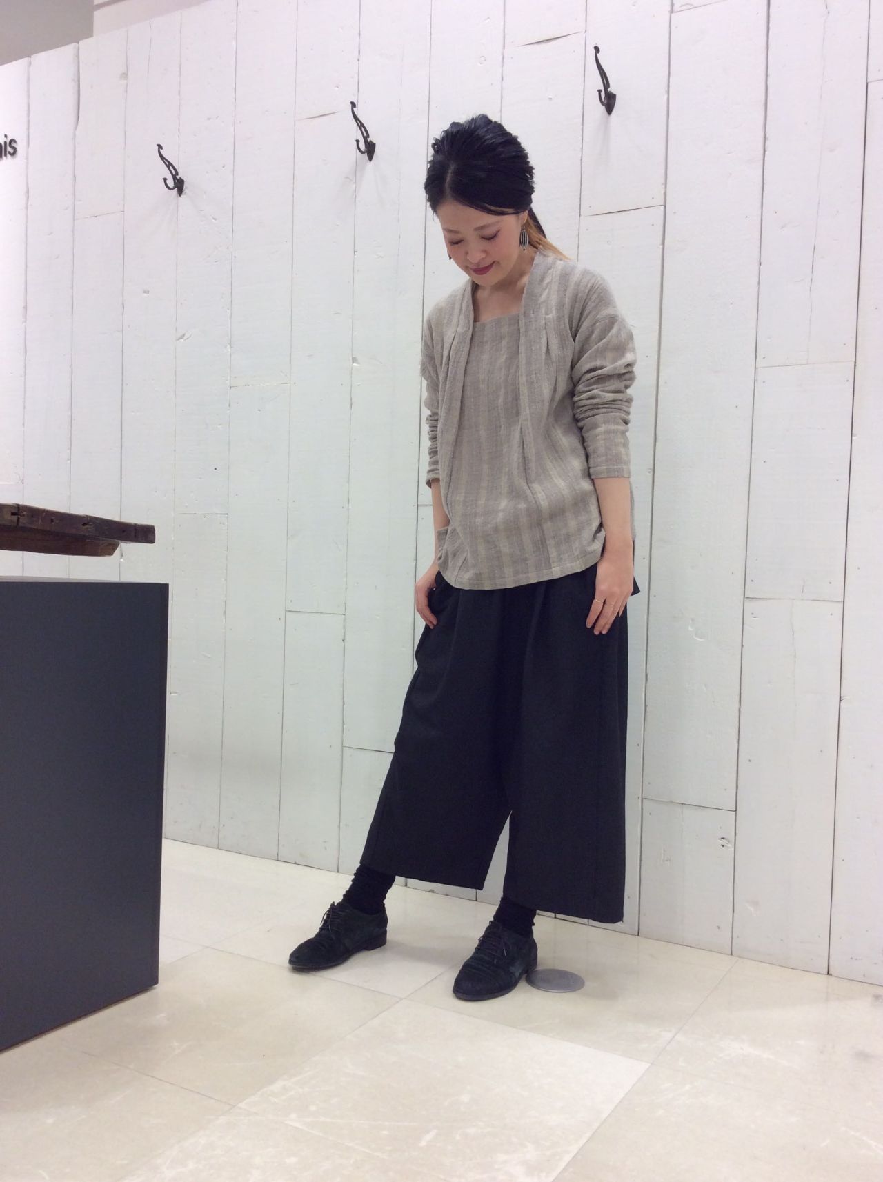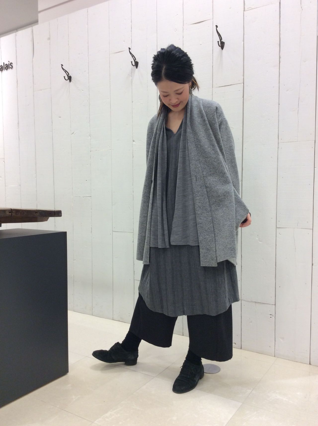 着丈が長いので、長めのカーディガンやアウターでゆるっとしたナチュラルな着こなしも素敵です。