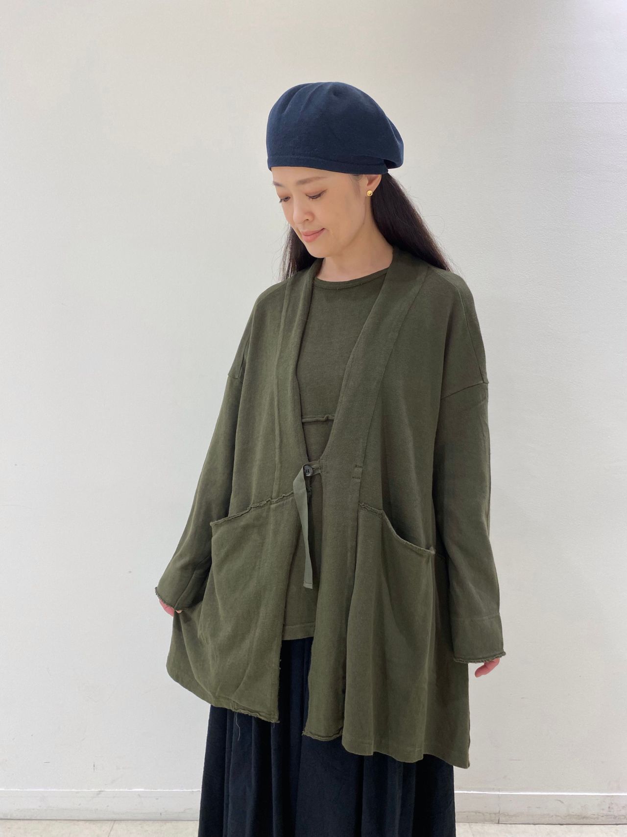 アウター感覚で使えるカーディガン。