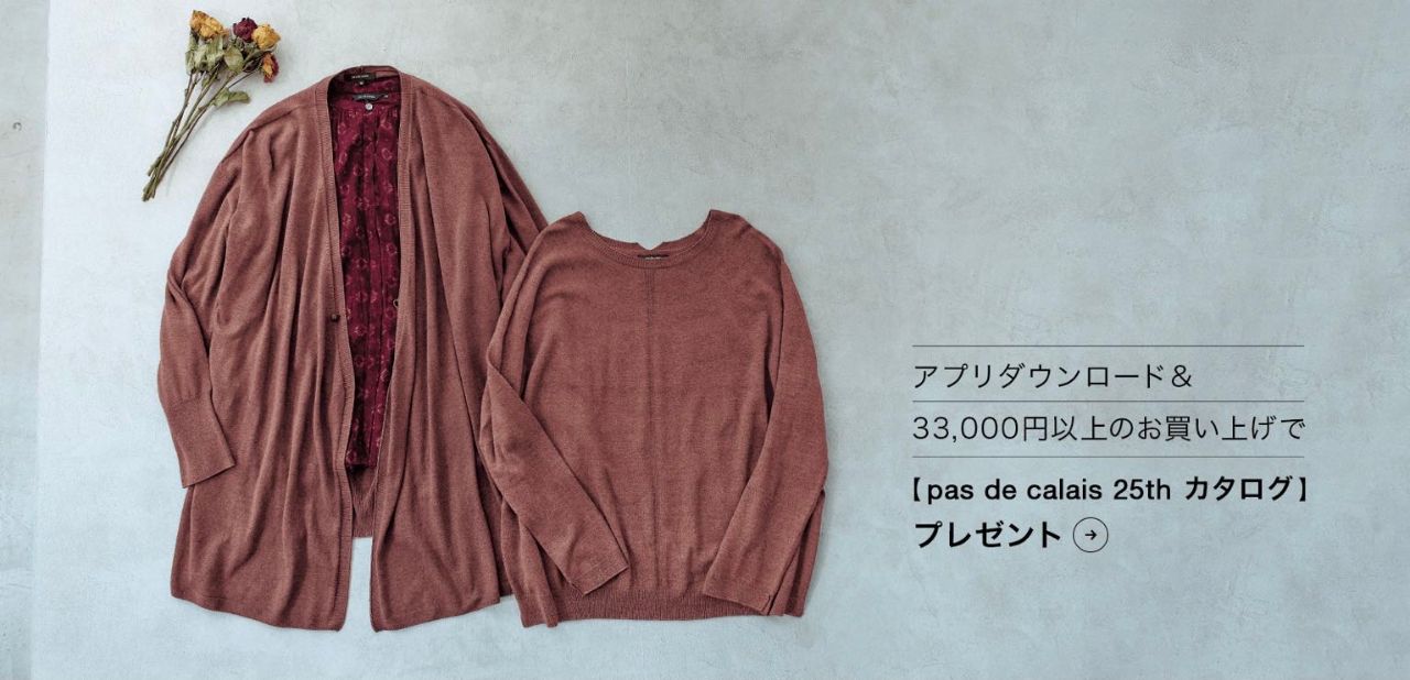期間中、税込み¥33,000以上ご購入と公式アプリダウンロードで 「25th Anniversary pas de calais Autumn/Winter 2023」カタログをプレゼント致します。(無くなり次第終了となります)