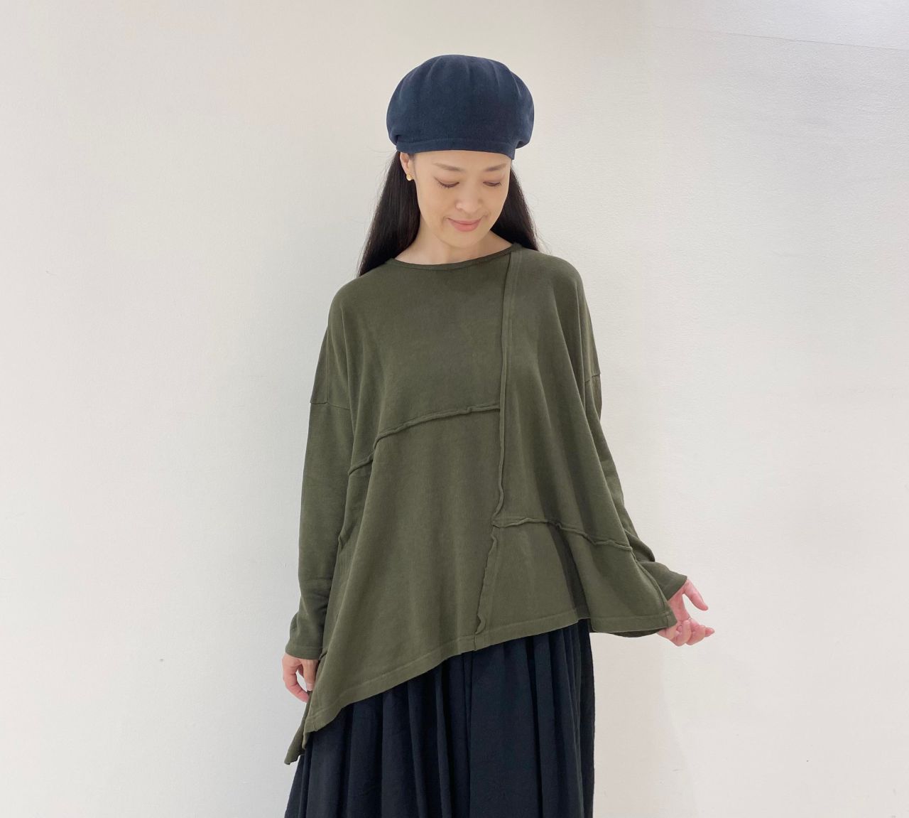 アシンメトリーなデザインで、1枚着でも活躍します。