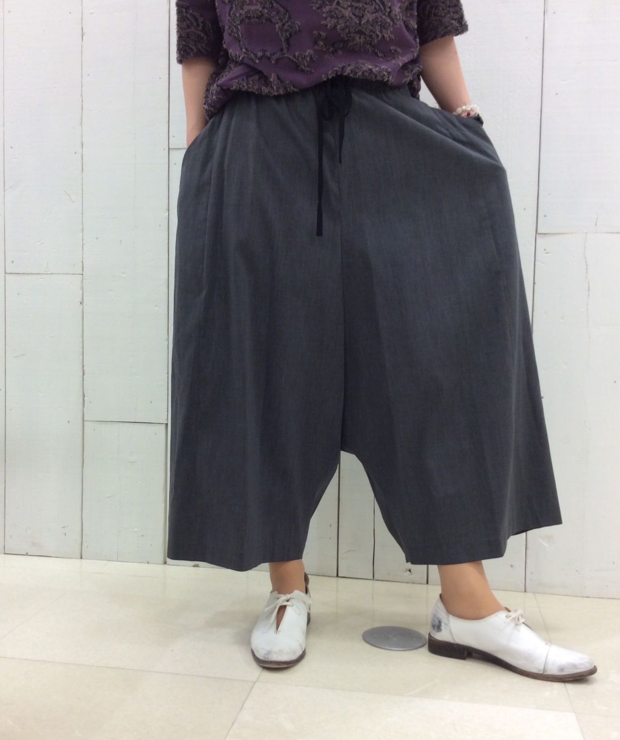 麻混トロピカルストレッチサルエルパンツ no.8462 col.グレー(着用)/ブラウン/クロ size.34/36(着用) ¥22.680