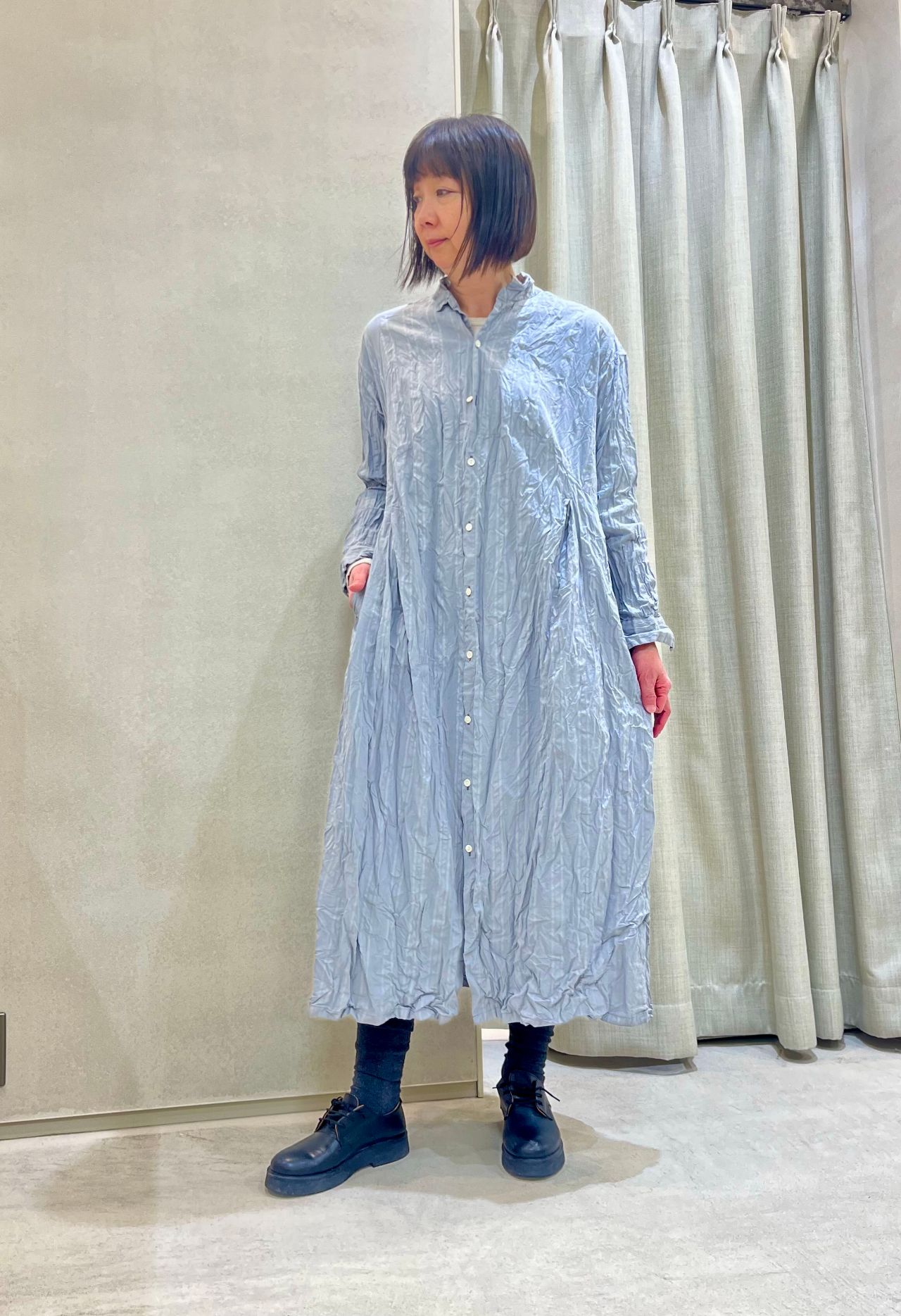 フロントフルオープンのシャツドレス。
