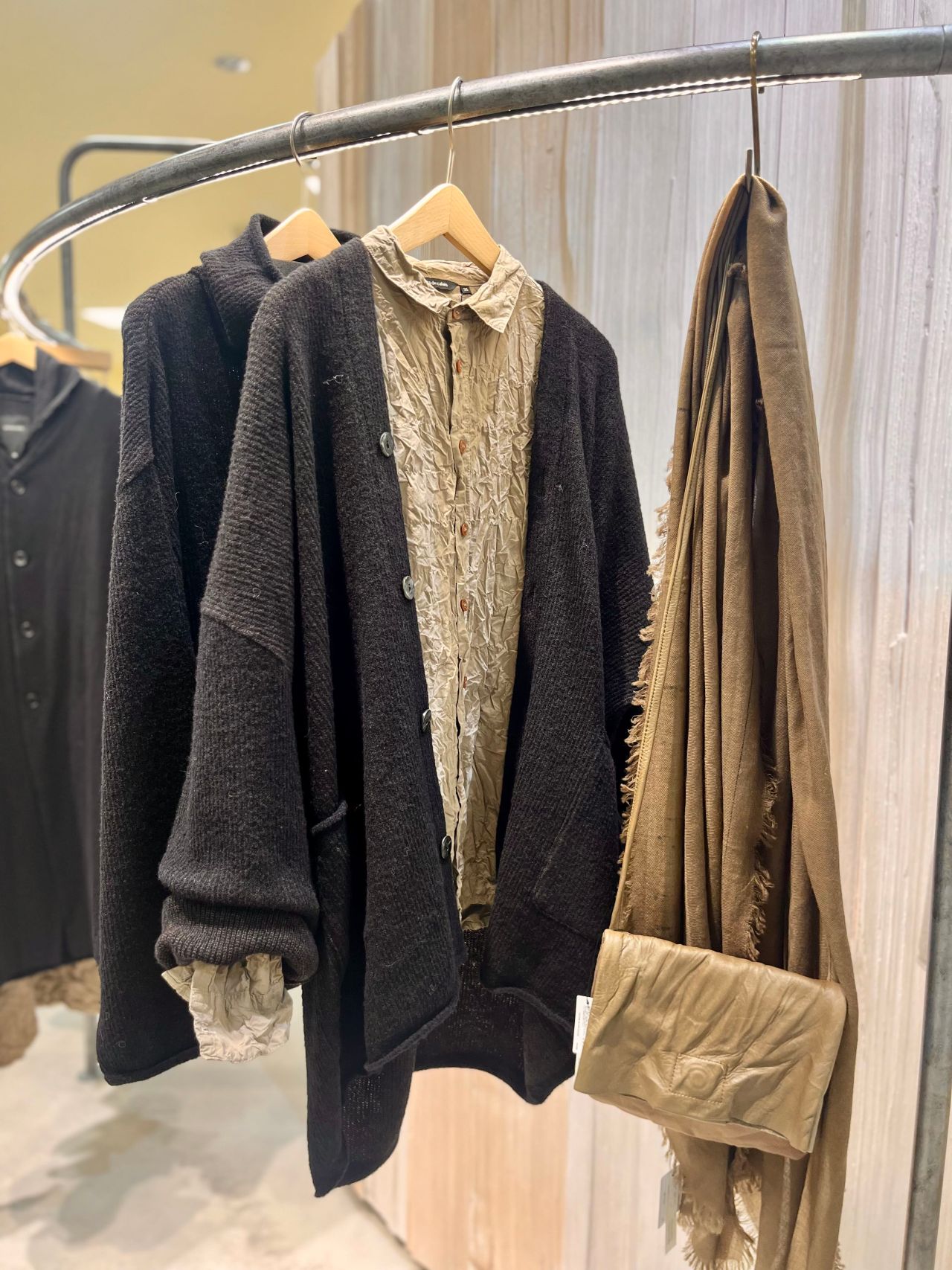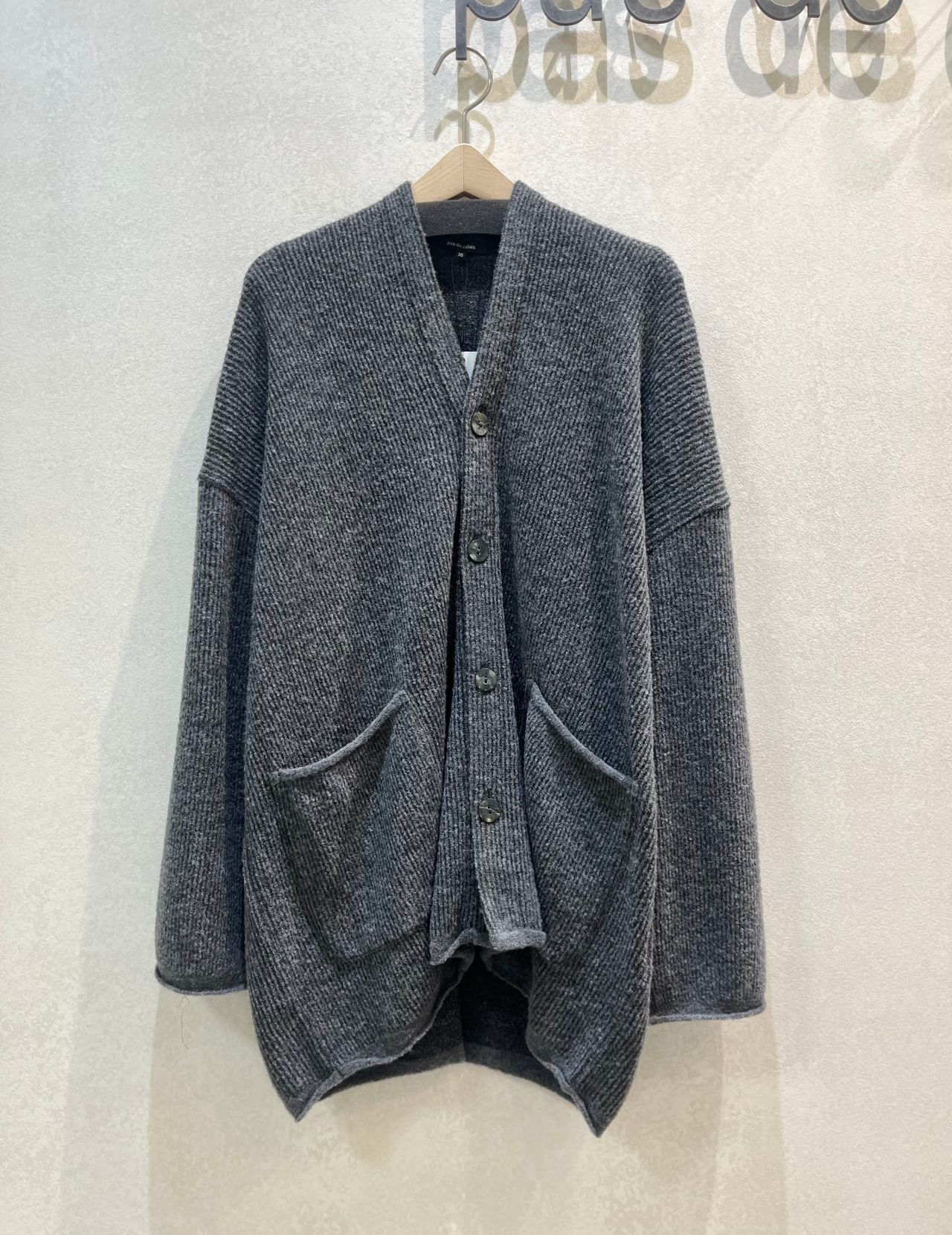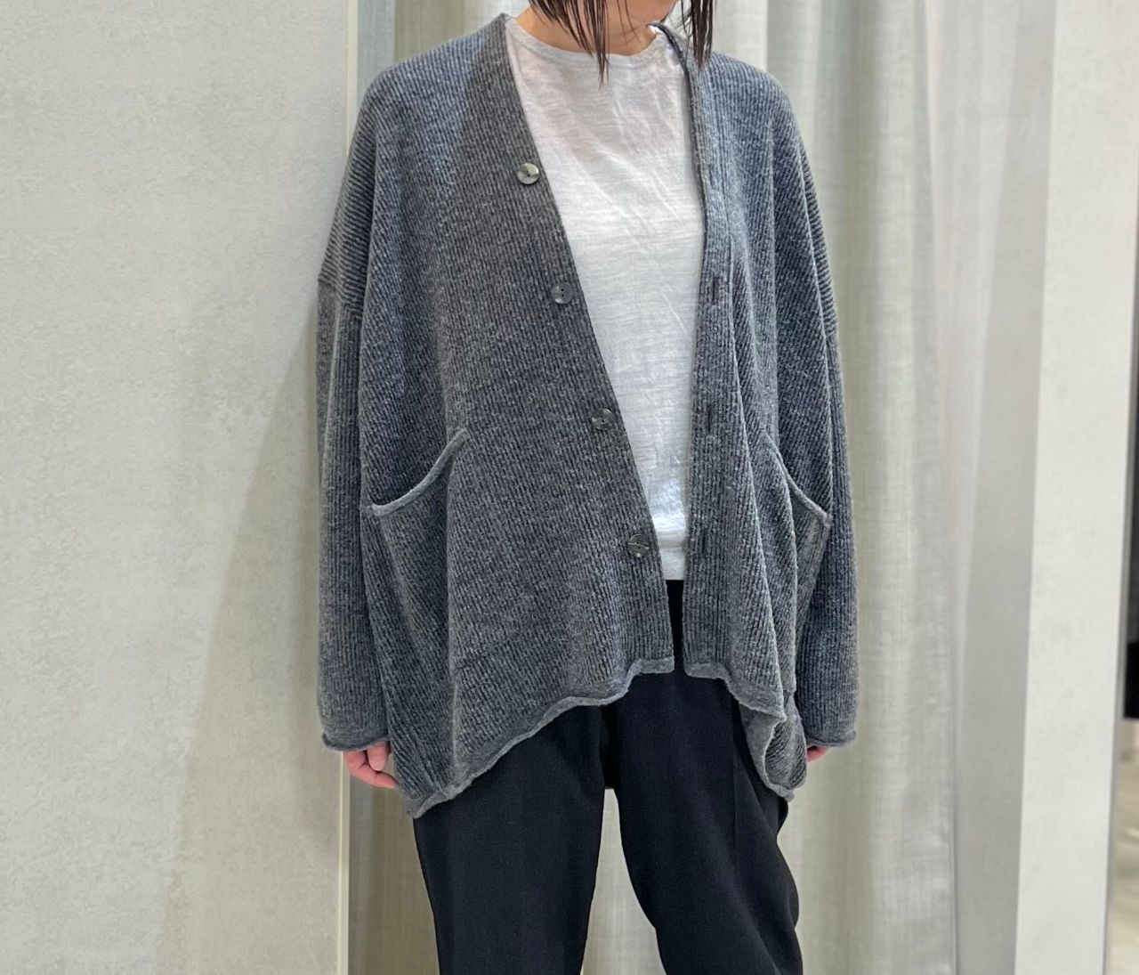 異素材で、ストライプ柄をジャガード編みで表現したカーディガンです。