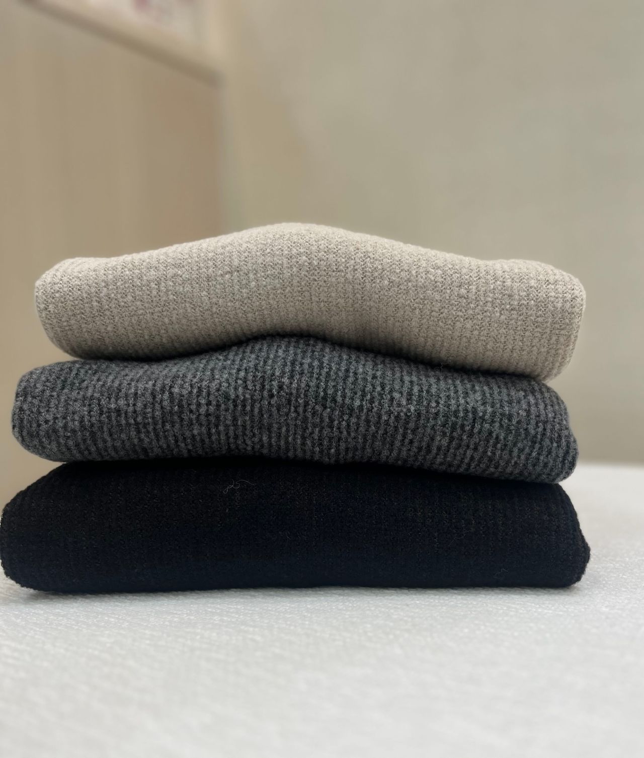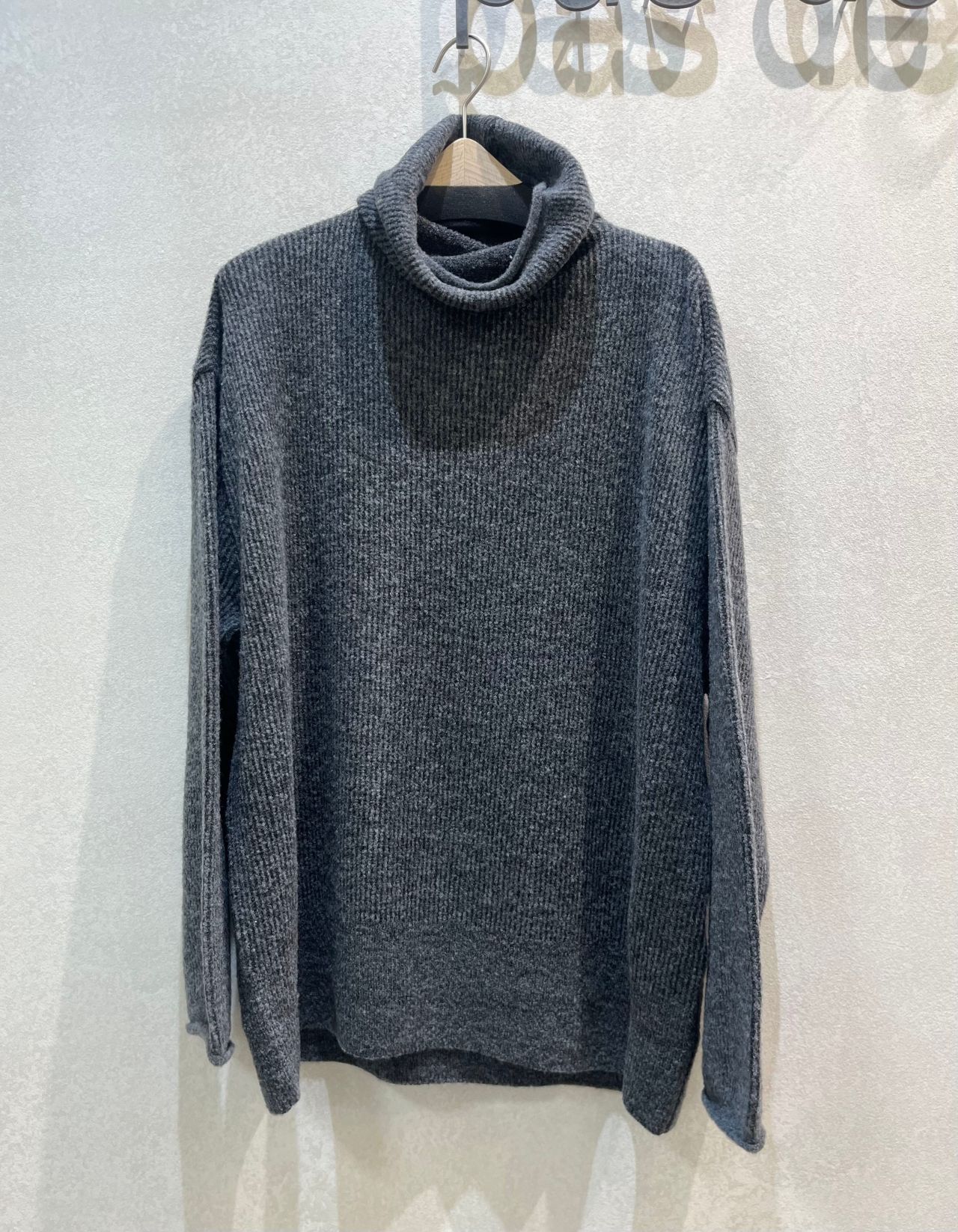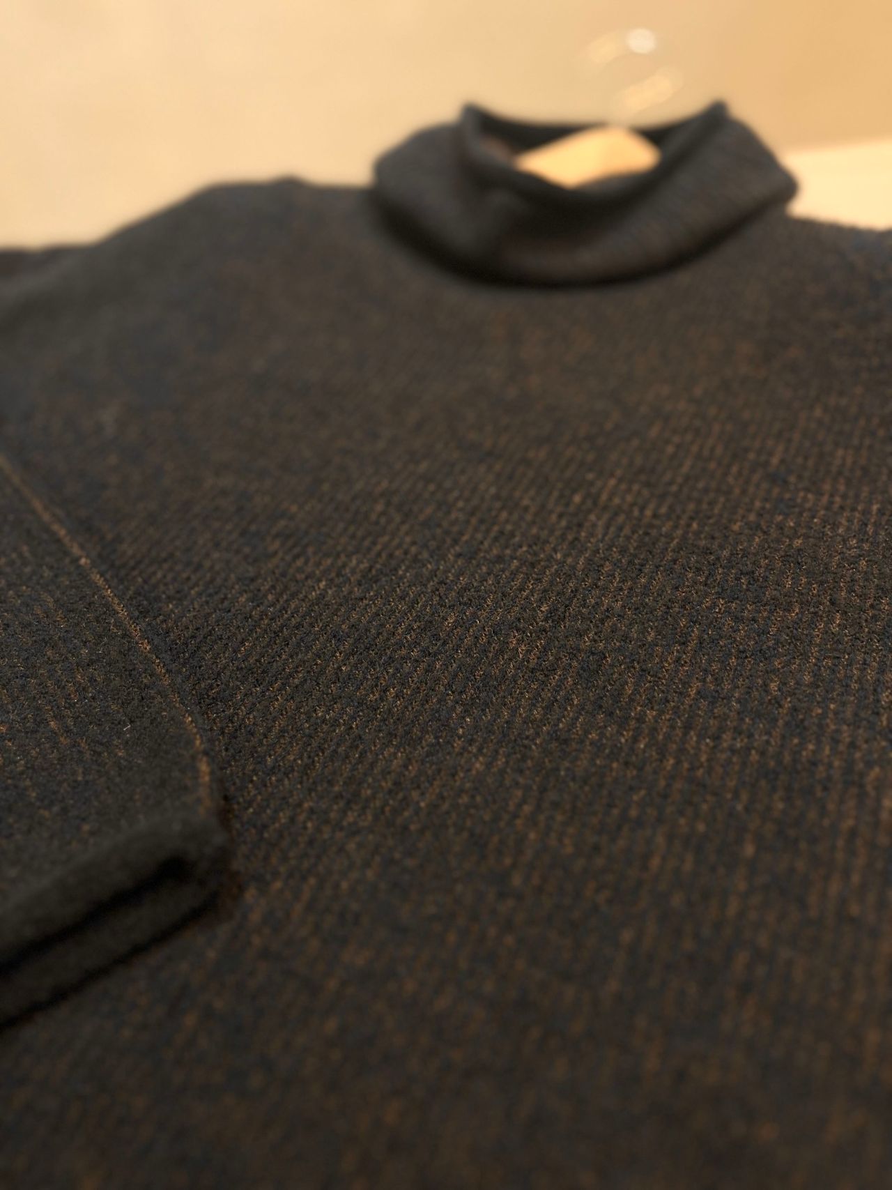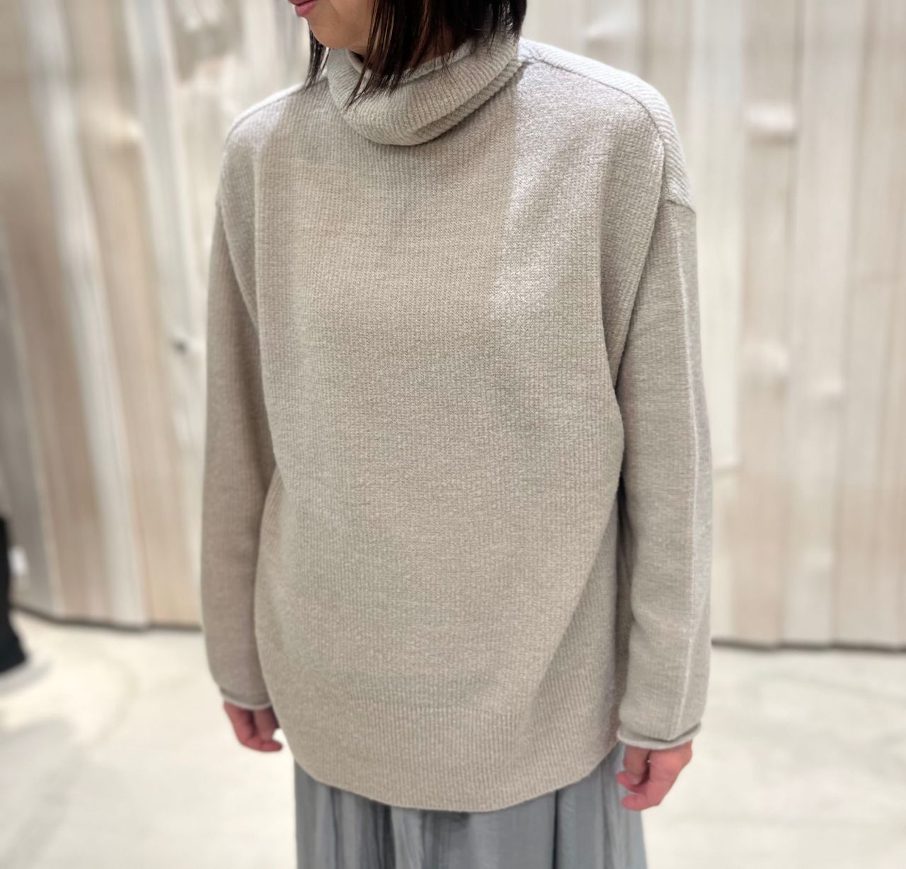 希少価値のスーリー・アルパカを使用している為、差し毛も無くチクチク間も少ないオフタートルプルオーバーです。