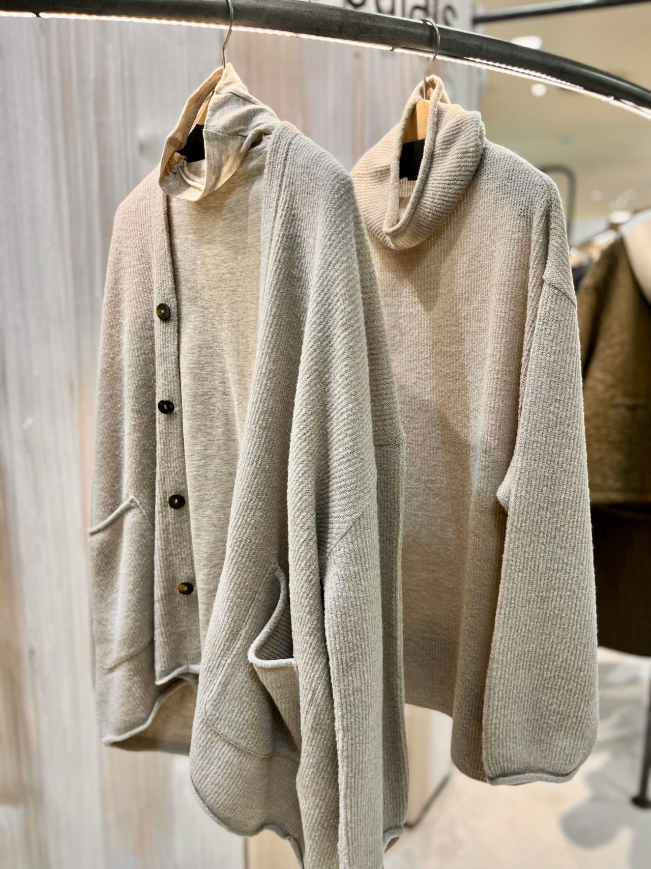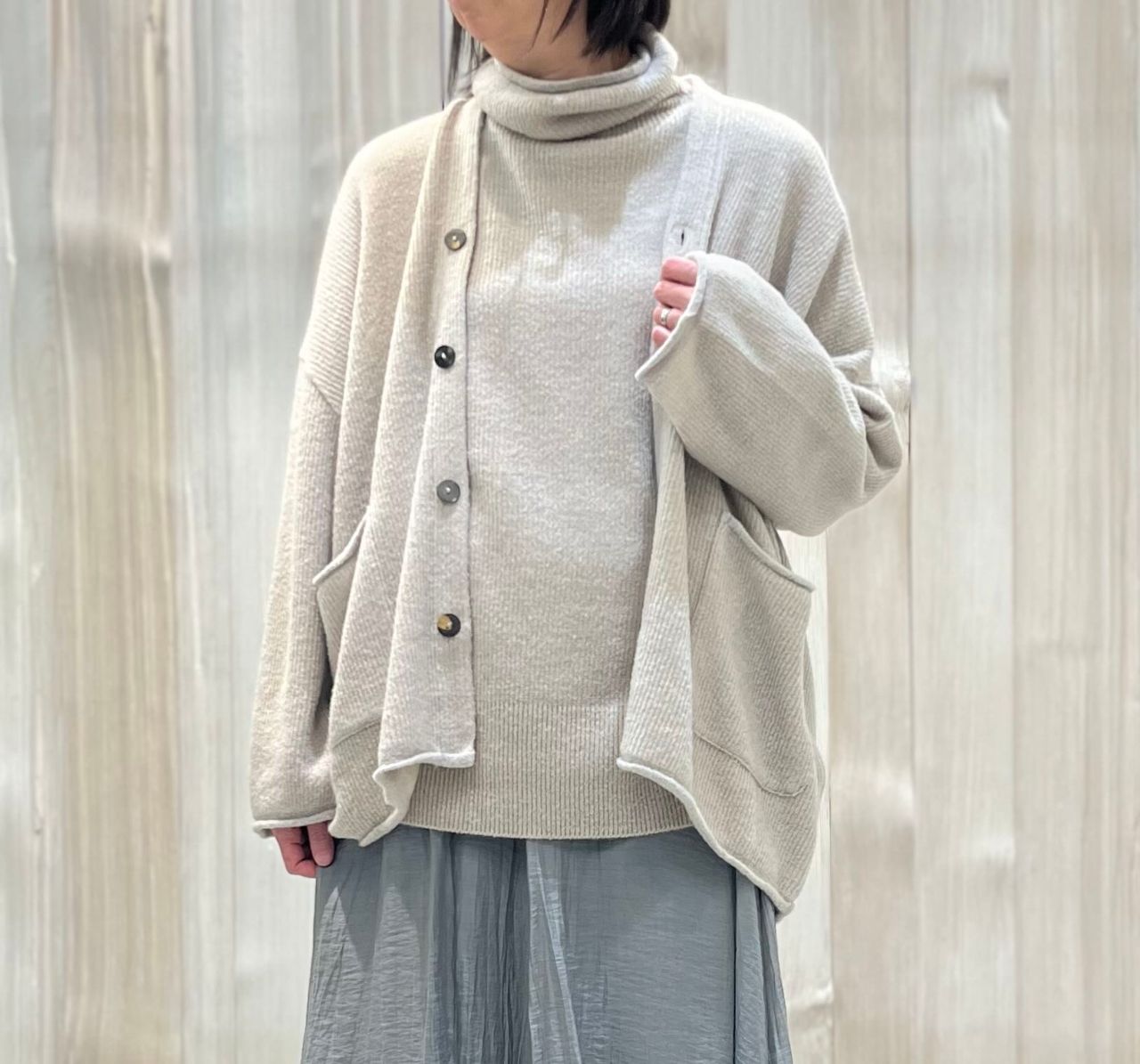 立体的な縦柄編みにしてふわふわ感を際立たせて、優しく上品な着心地の1枚です。