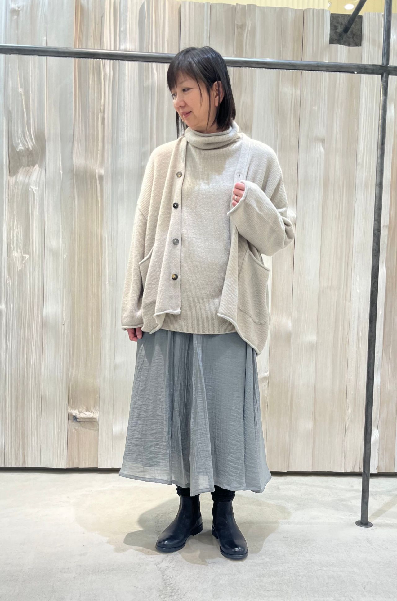 たっぷりとした横長シルエットで着用した時の落ち感でアシンメトリーになっています。