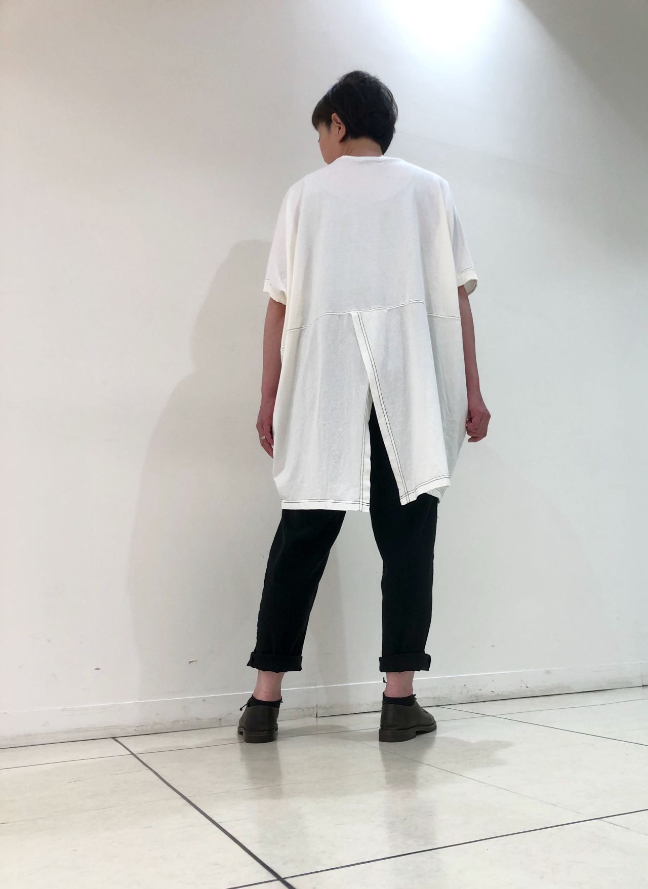 【新作】カットソー&布帛コンビ製品染めロングプルオーバー