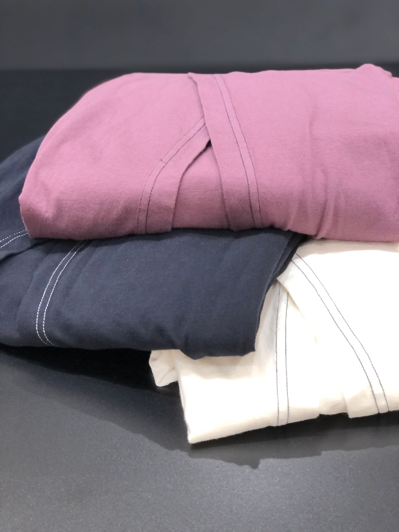 不要なかった繊維を取り除き、糸の表面をきれいにした糸ののみを使用したカットソー生地と