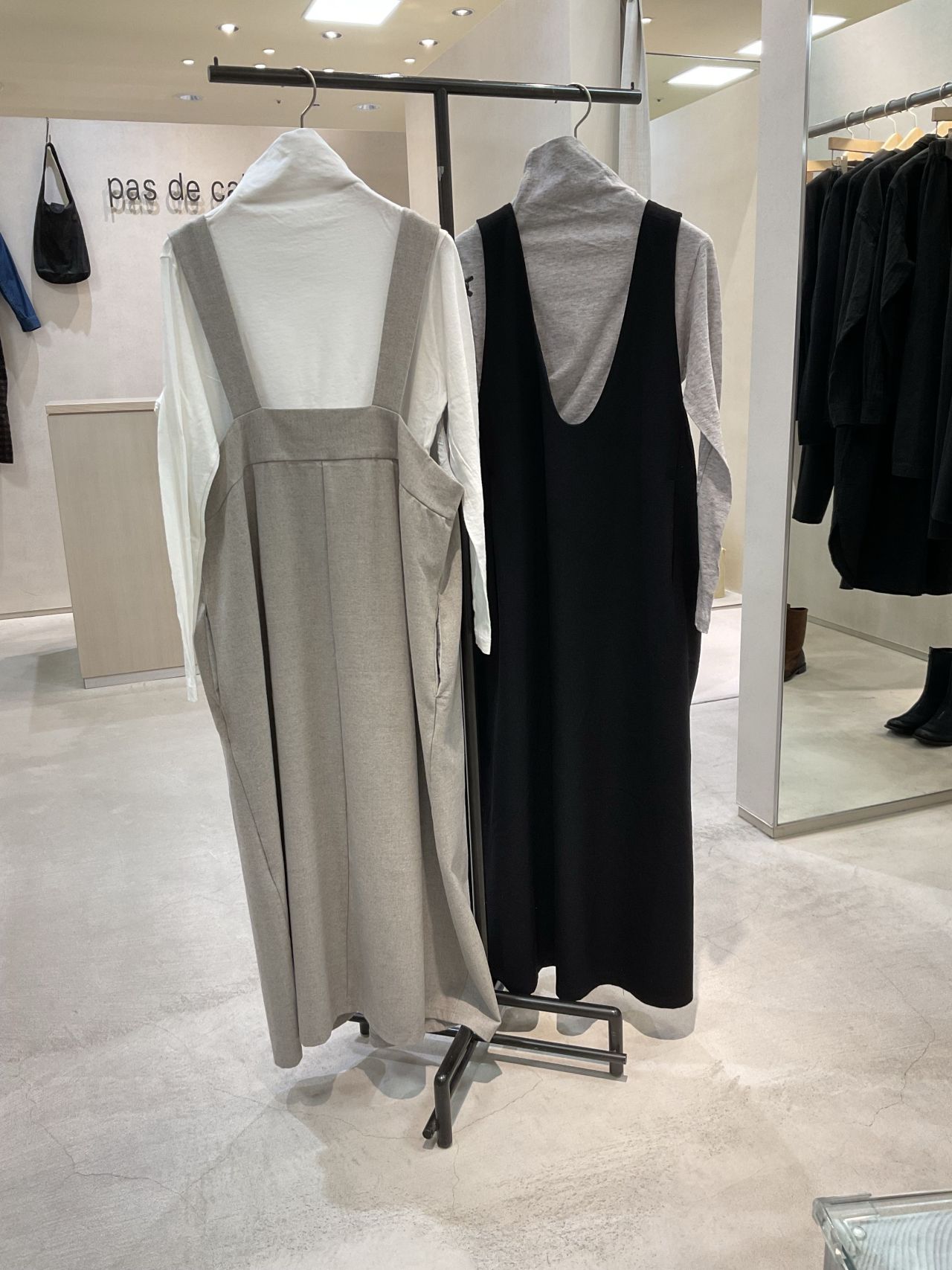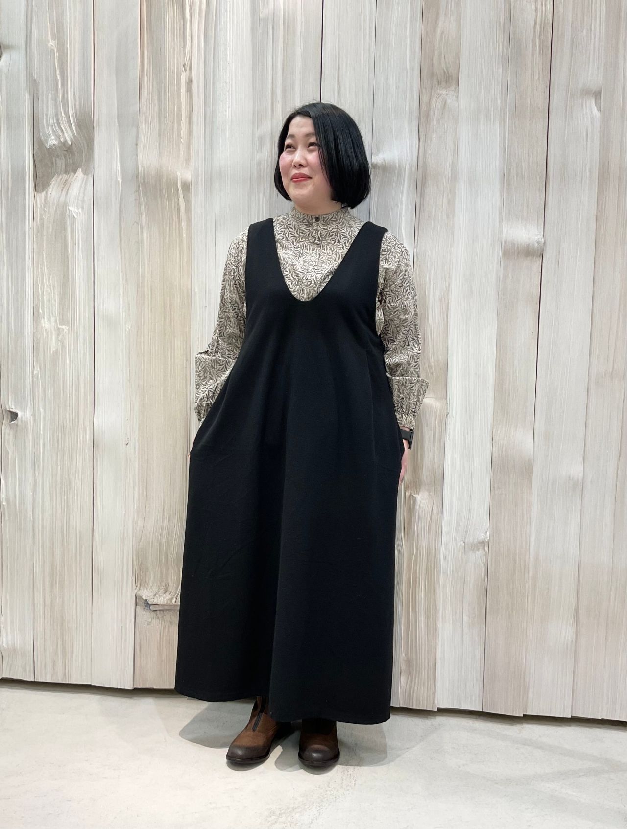 広がりすぎない分量感で大人なジャンパードレスです。