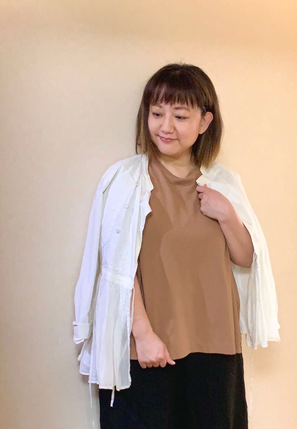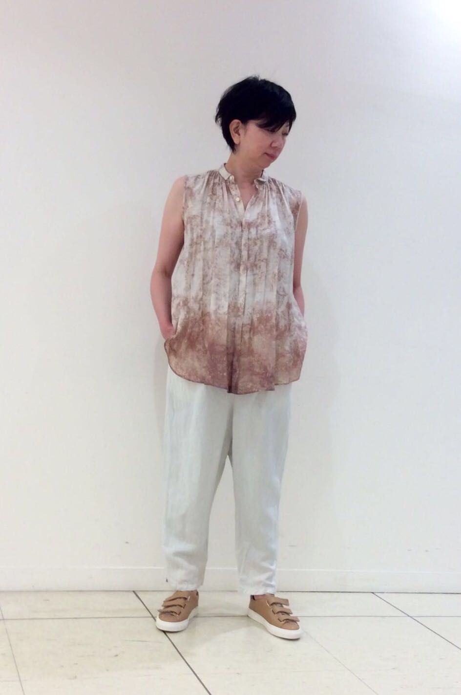 レーヨンの落ち感と、リネンの清涼感が春夏にぴったりの、サラッとした肌触りです。