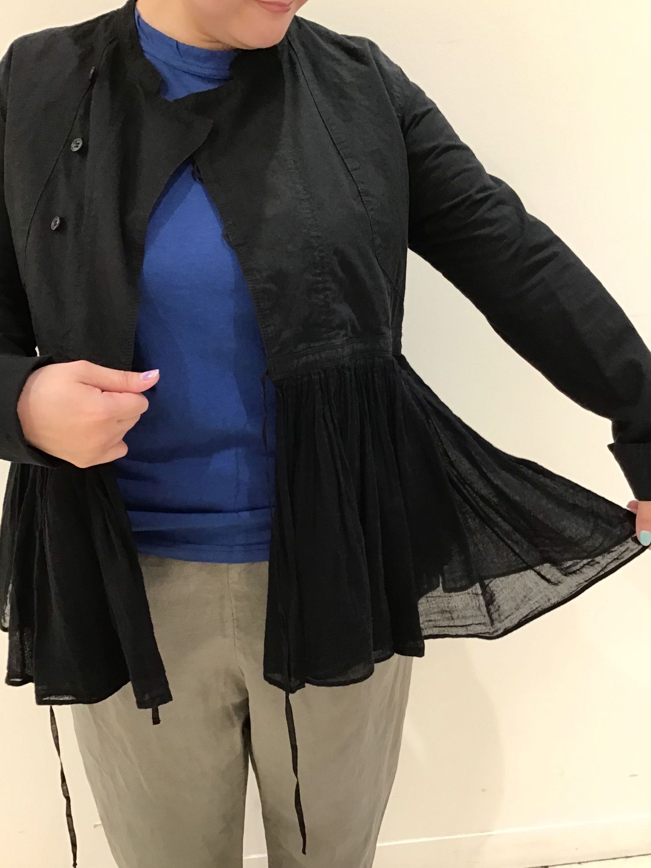 カシュクールなので前をしめてブラウス感覚でも着て頂ける、春夏にぴったりのジャケットです。